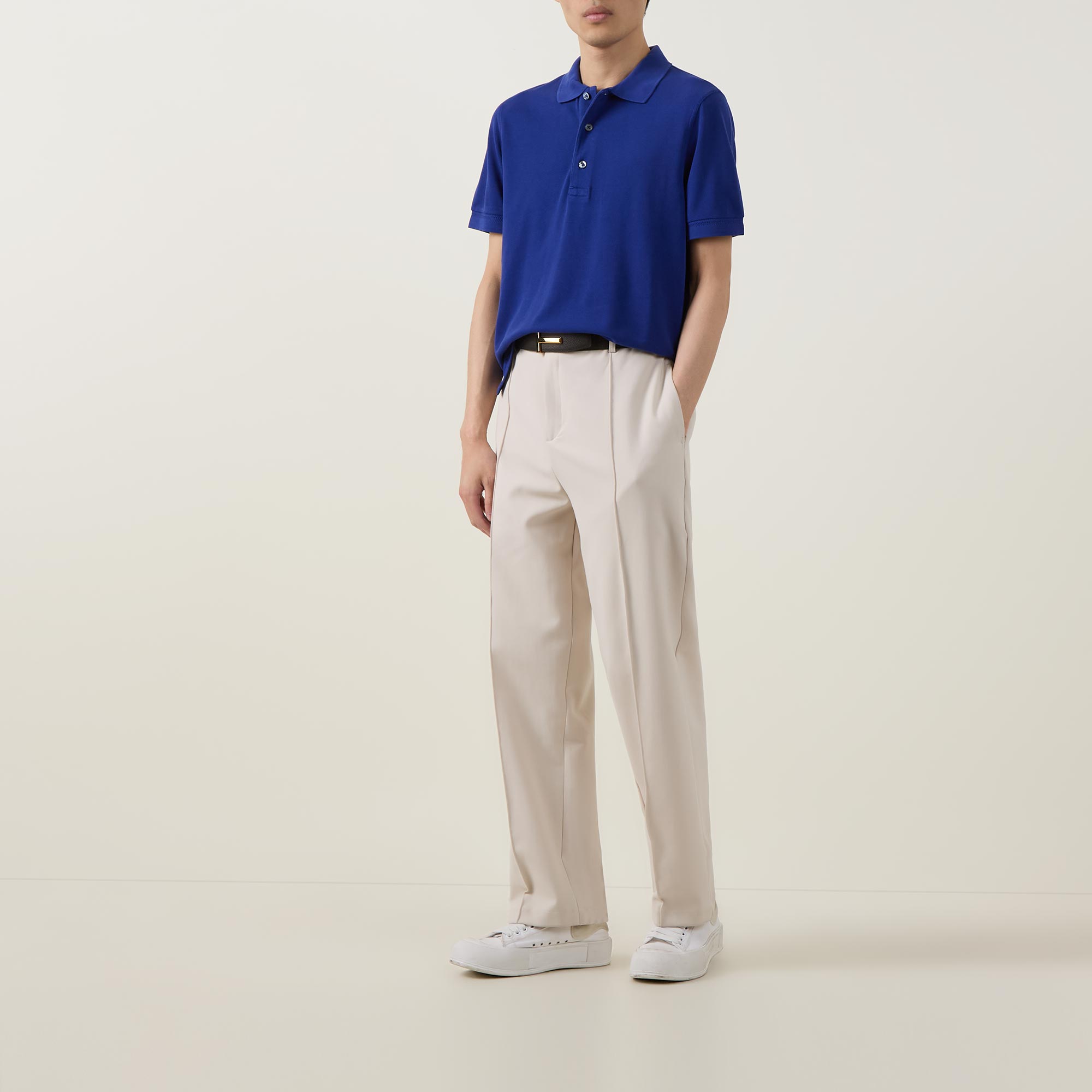 - Polo collar, short sleeves, button fastenings, straight hemline