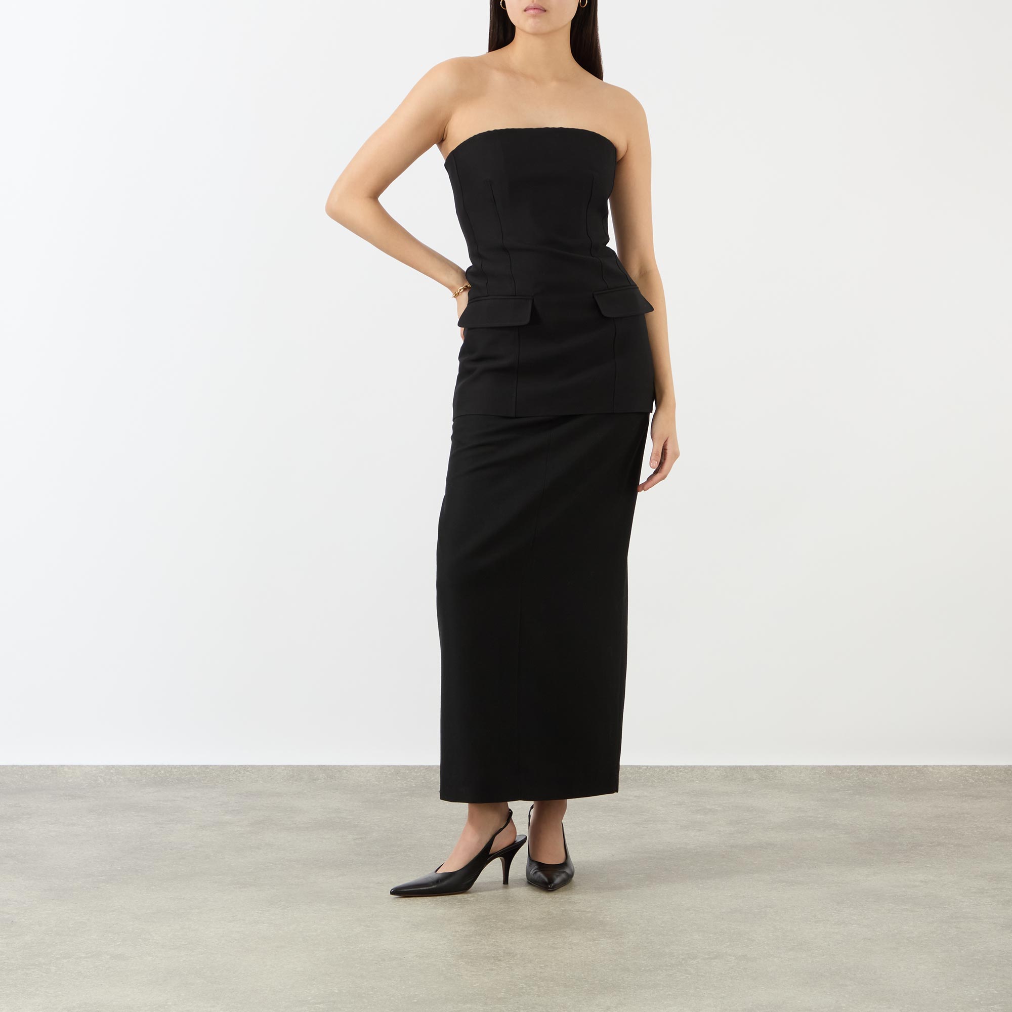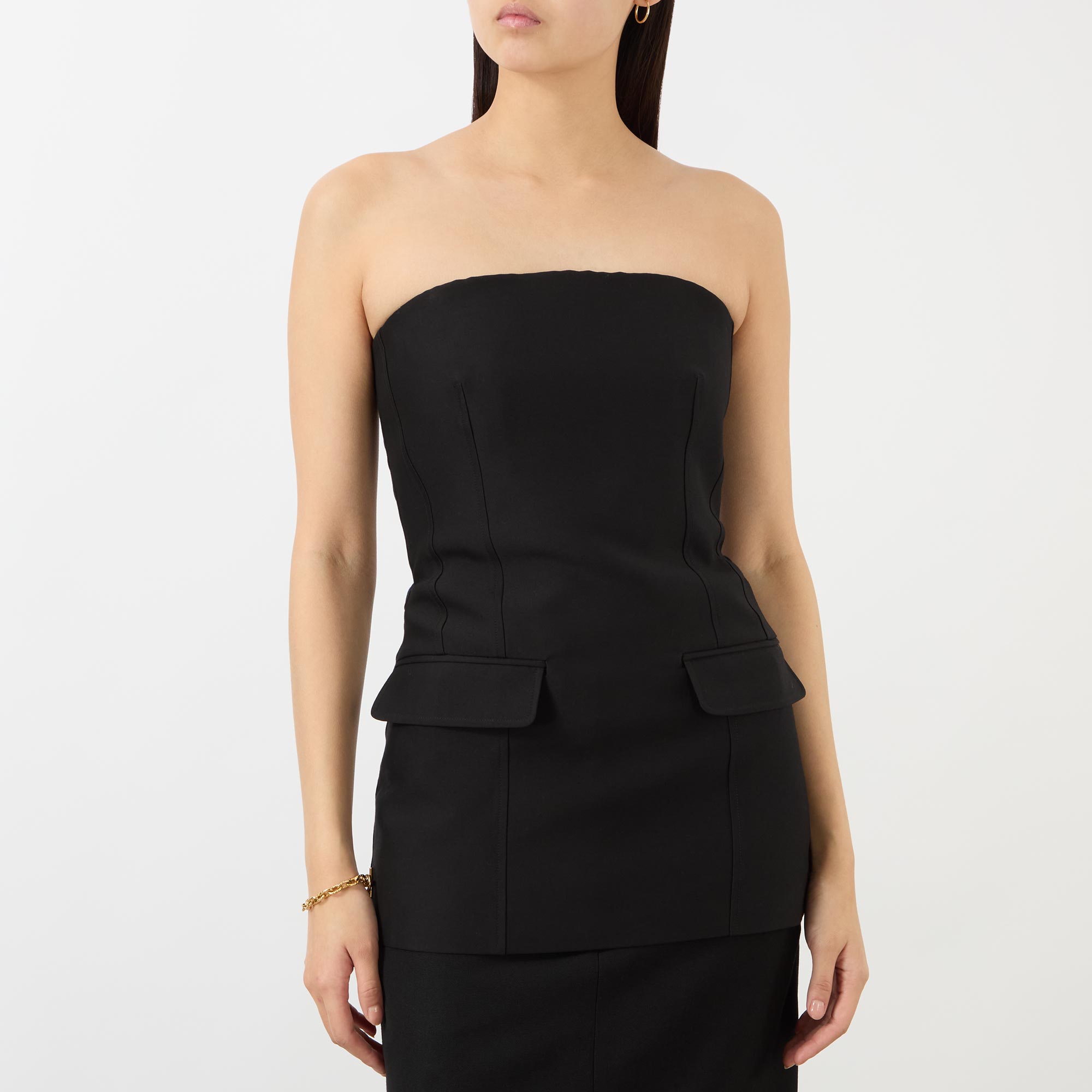With a focus on high-quality craftsmanship, many designs from Totême's SS26 collection mix fluidity with structure, creating pieces that are both chic and practical for tailored, streamlined edits, take this top. Framed by a strapless neckline, it features a concealed rear zip fastening and a darted construction for a soft curvature at the waistline, while finished with two hip flap pockets to add a polished edge.