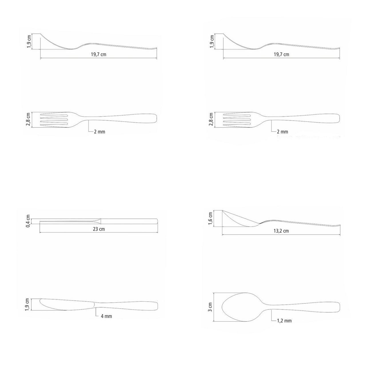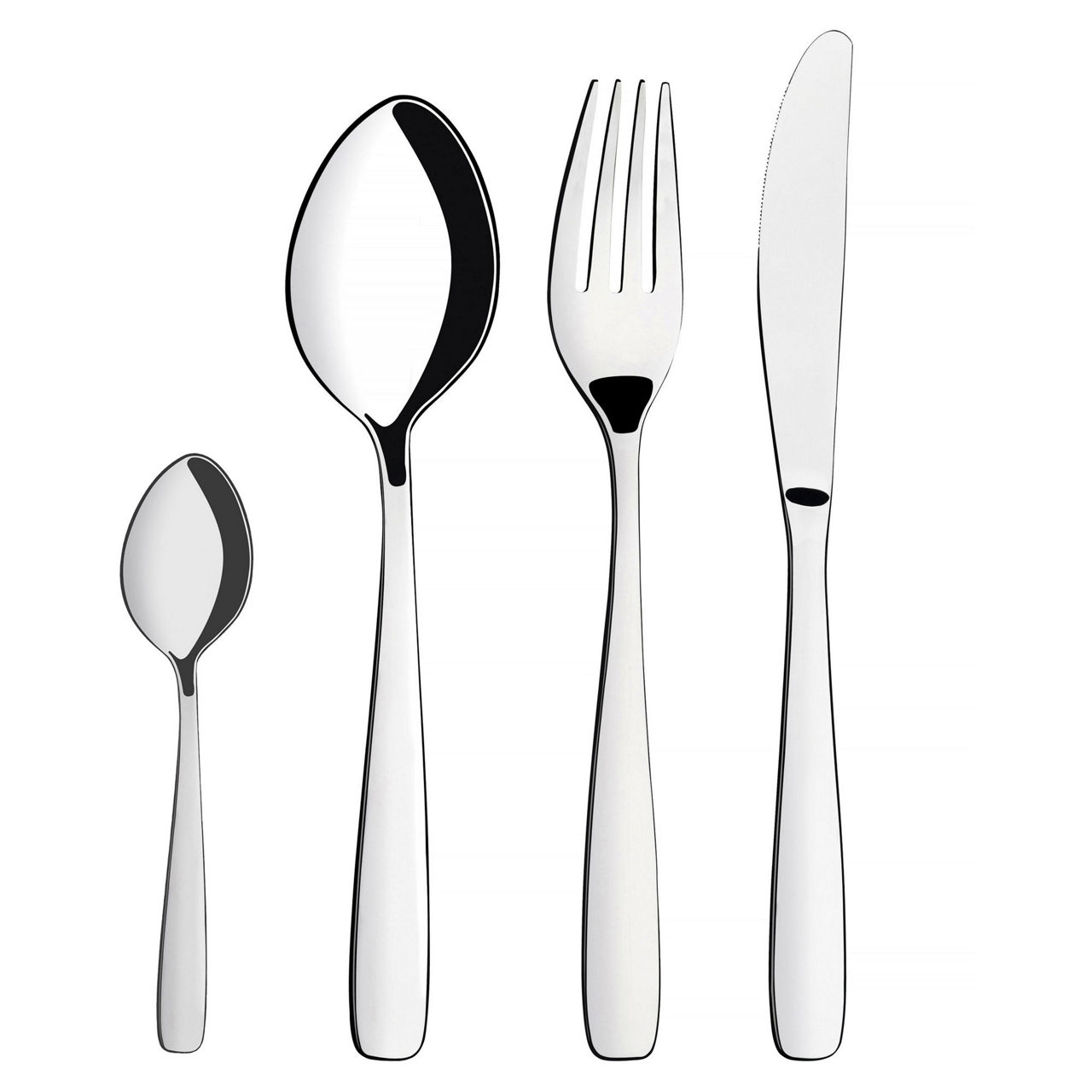- 16-piece cutlery set made from high quality polished stainless steel. Deal for 4 people, their inspired style lends them to being equally suited for everyday use or for special occasions. Knives have a serrated edge and are thermally treated for a higher degree of durability, and longer-lasting cutting edge