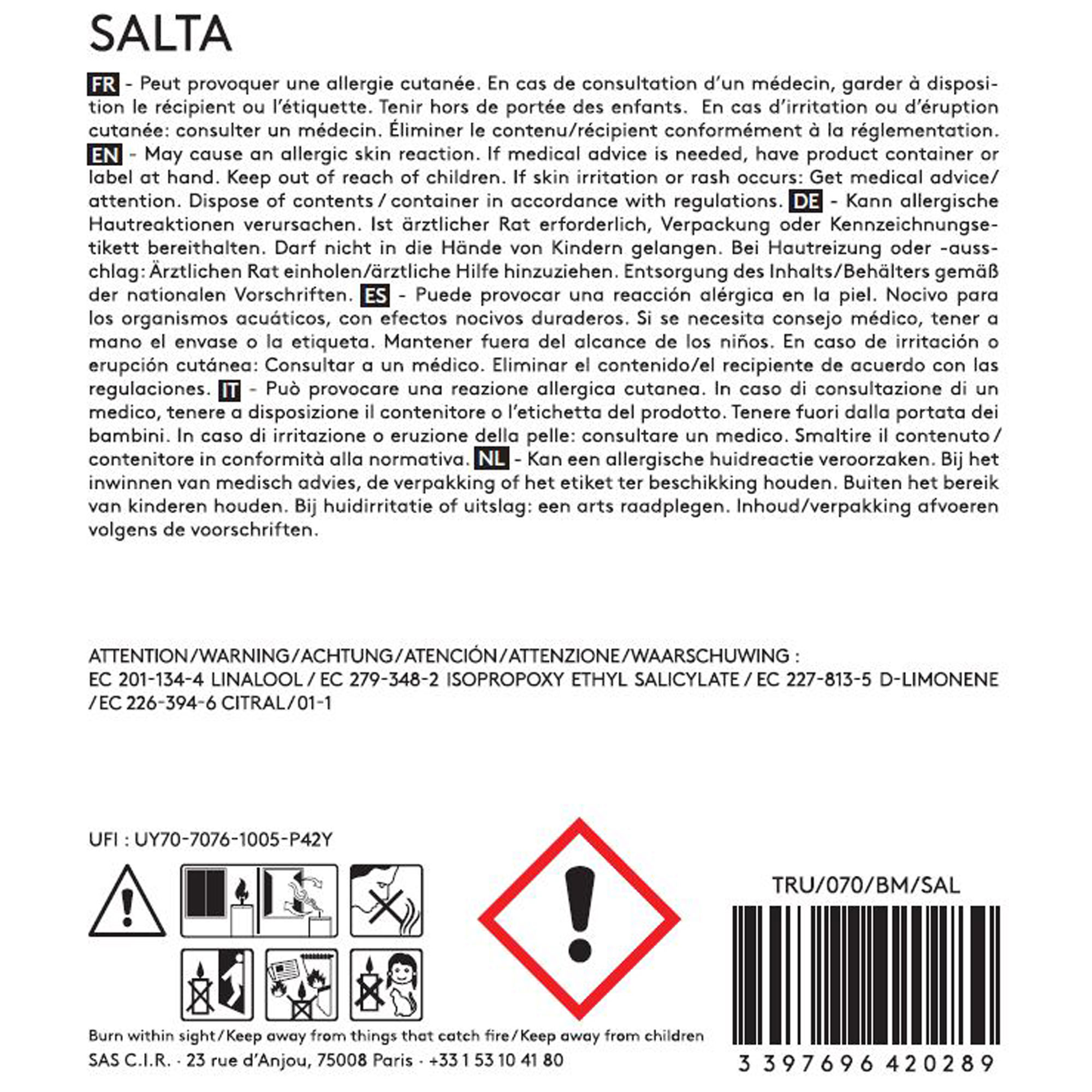 - May cause an allergic skin reaction. Harmful to aquatic life with long lasting effects. IF ON SKIN: Wash with plenty of water and soap. If skin irritation or rash occurs: Get medical advice/attention. Contains: LINALOOL - ISOPROPOXY ETHYL SALICYLATE - LIMONENE - CITRAL. Emergency telephone number : +33 (0)1 45 42 59 59. Association/Organisation : INRS / ORFILA http://www.centres-antipoison.net.