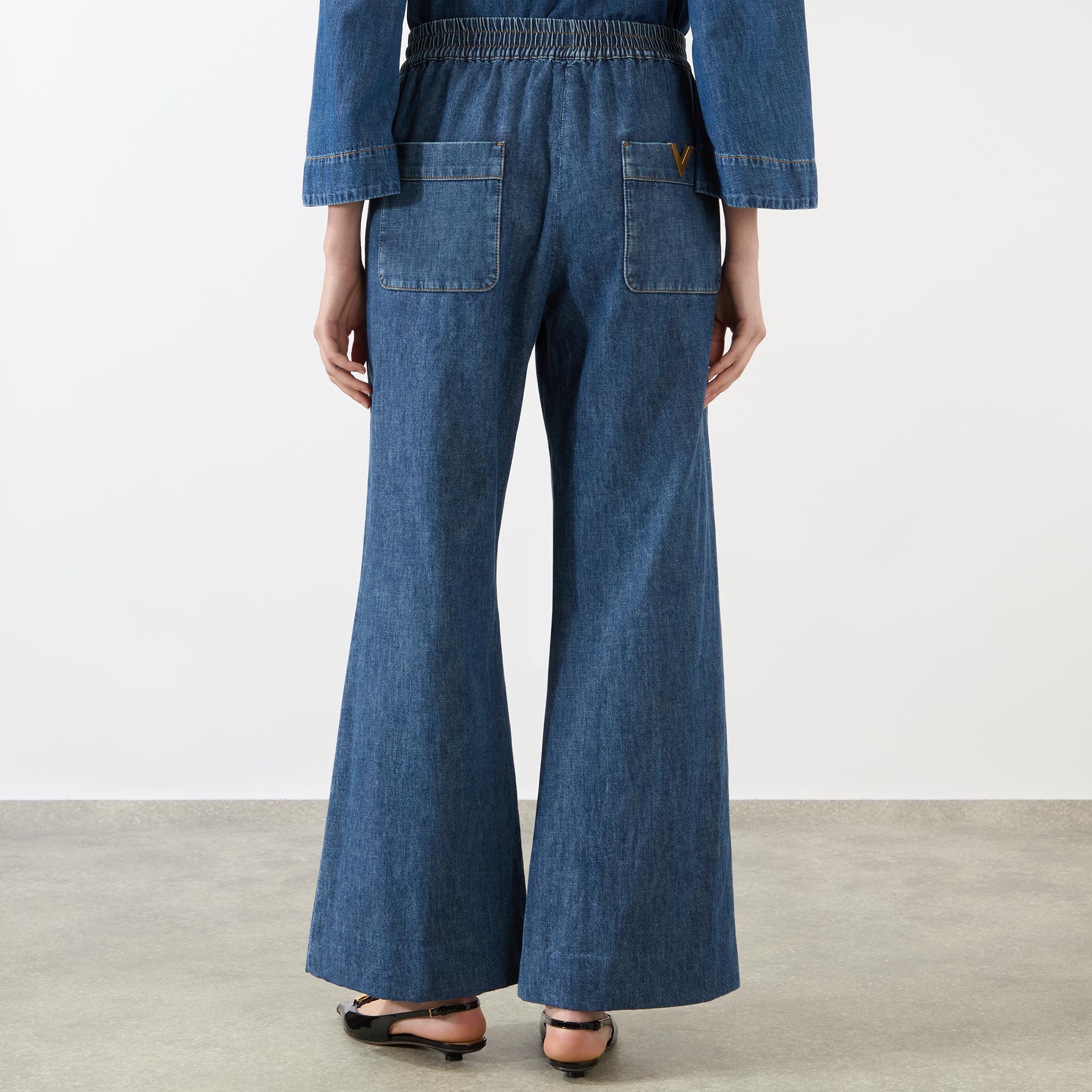 Gleaming logo hardware adorns a range of styles across the SS26 collection by Valentino, seen in the design of these jeans. Featuring an elasticated waistband with a drawstring adjustable fit, they fall to a wide-cut leg, finished with tobacco stitching and patch pockets to the rear.