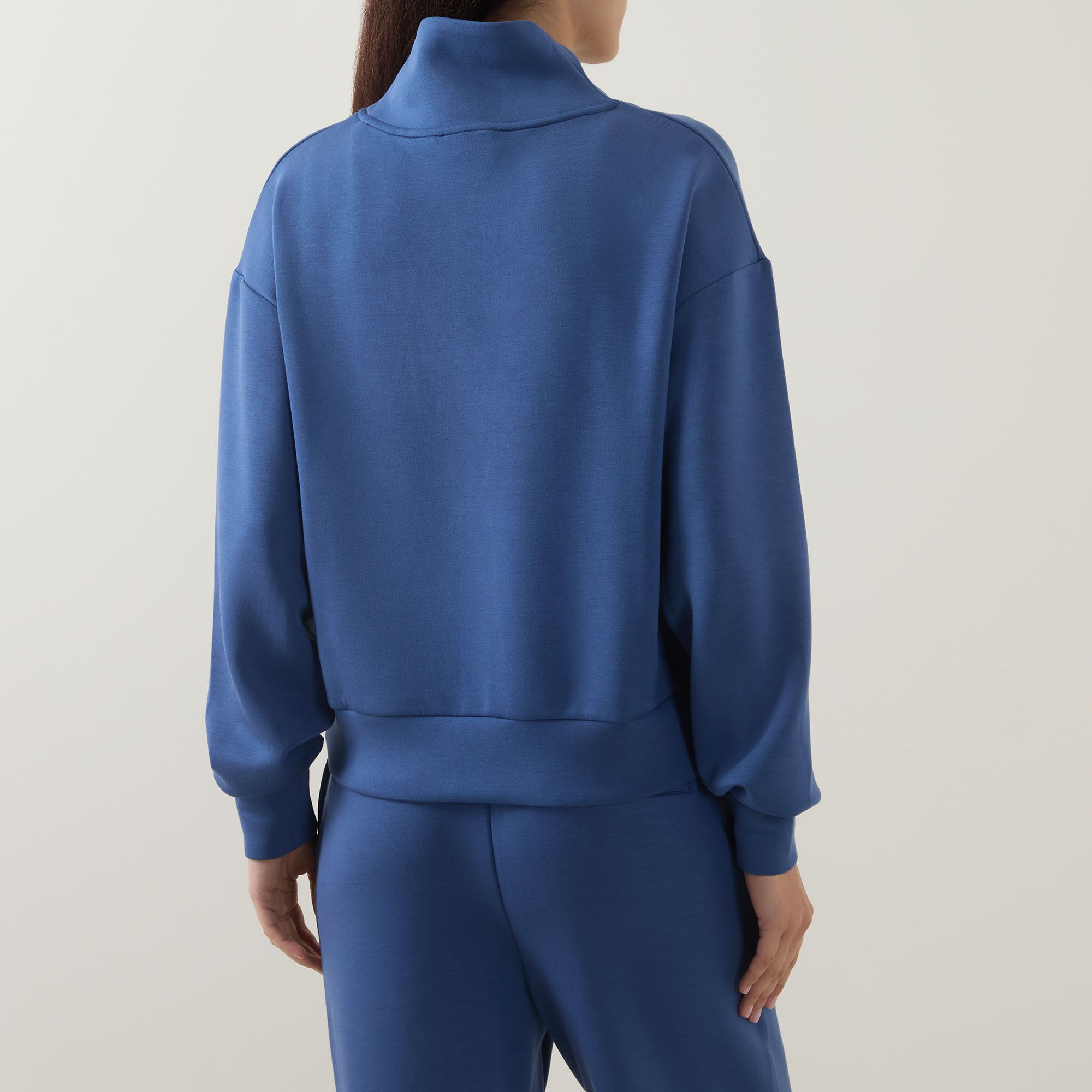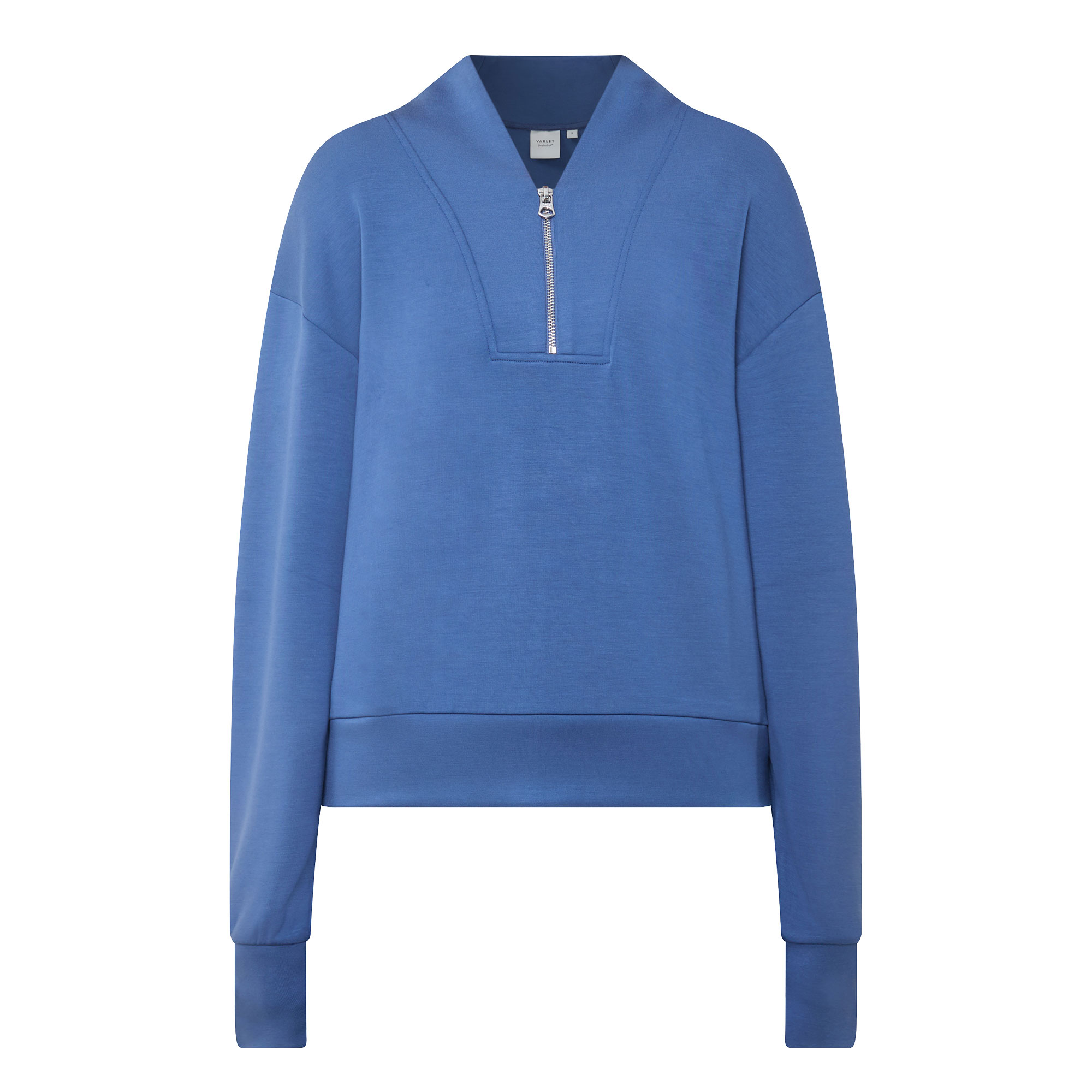 - V-neckline, half-zip fastening, dropped shoulders, deep cuffs, ribbed trims, lightweight DoubleSoft® fabric