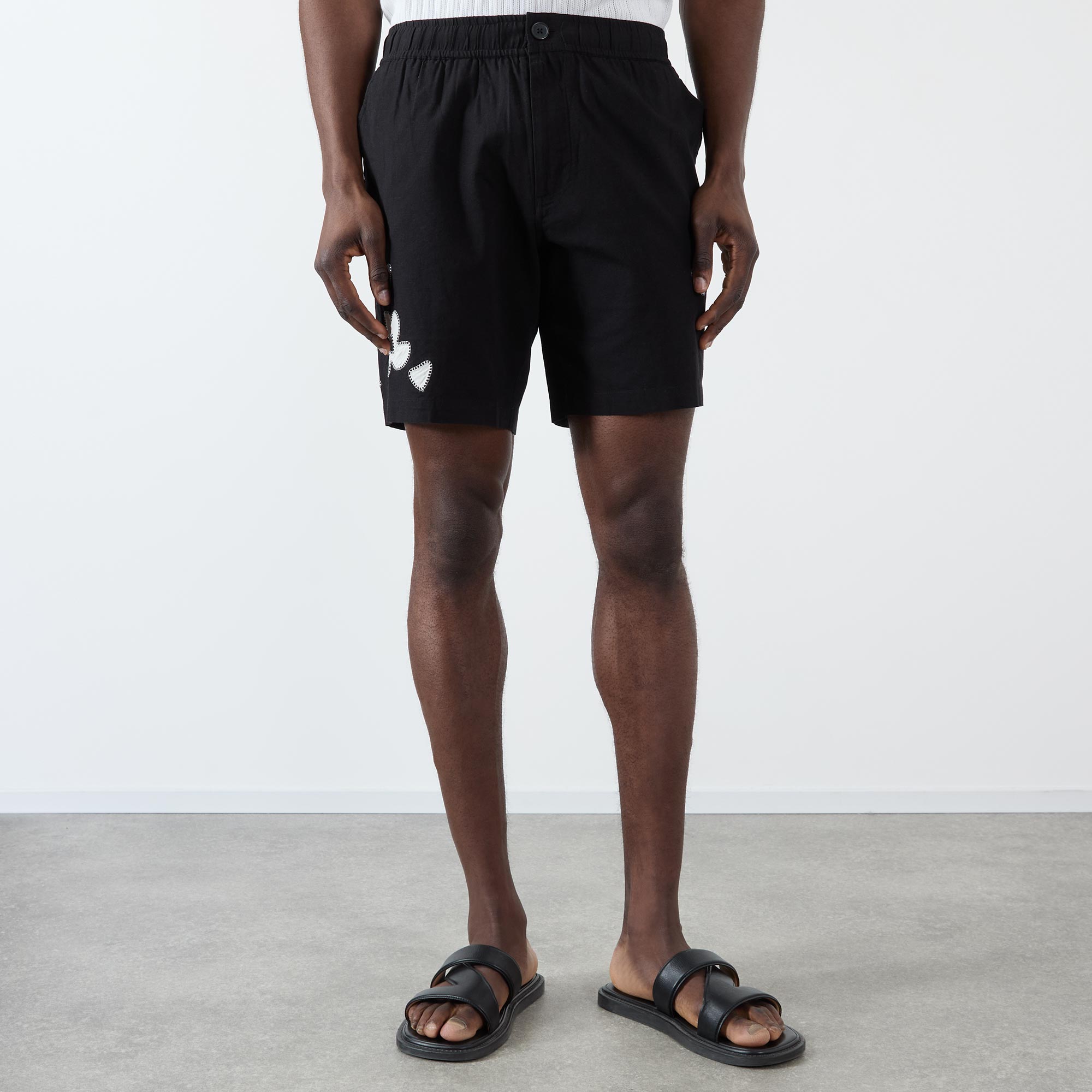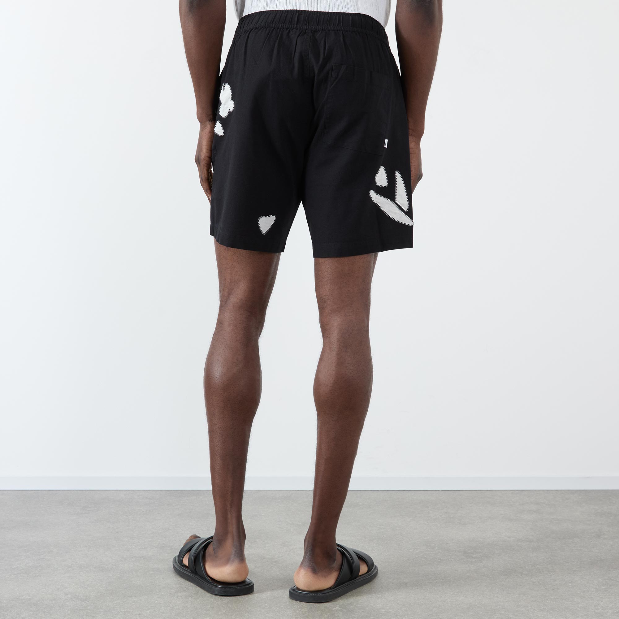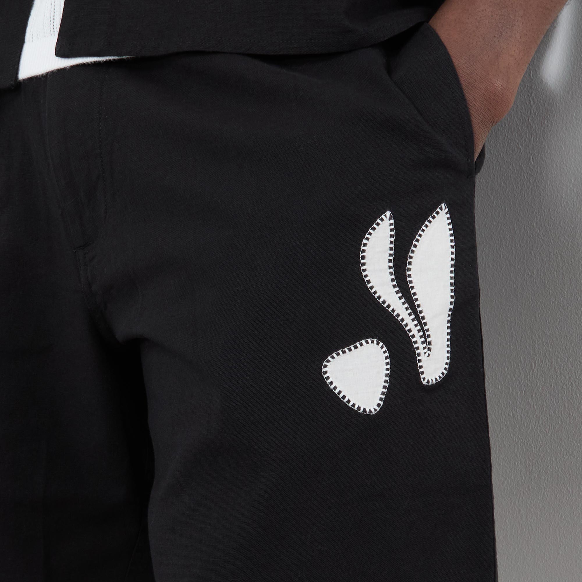 • Elasticated waistband with internal drawcord for adjustable fit, side entry pockets, rear patch pocket, branded tab, appliqué details with micro blanket stitch texture