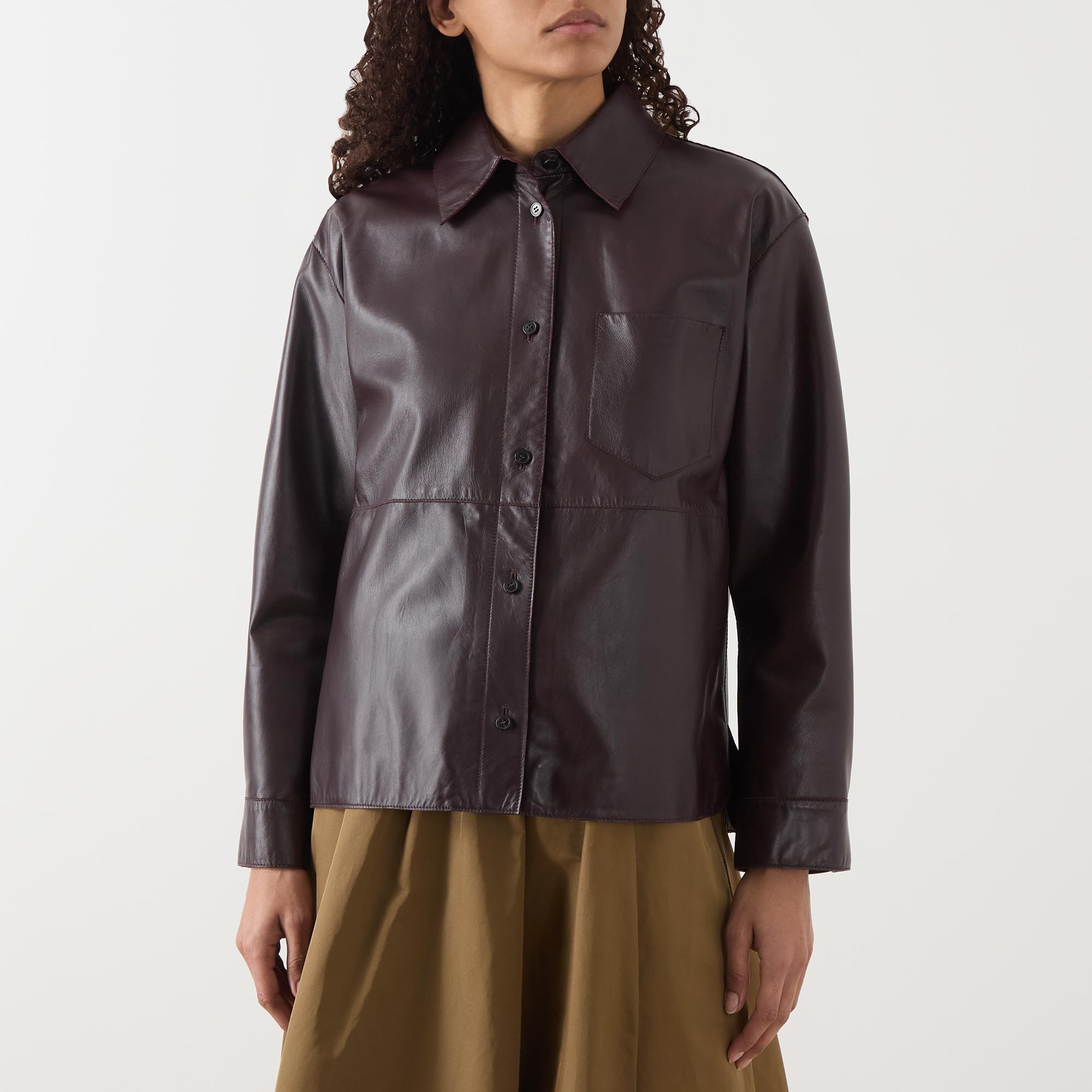 - Smooth finish, long sleeves, pointed collar, button fastenings, chest pocket