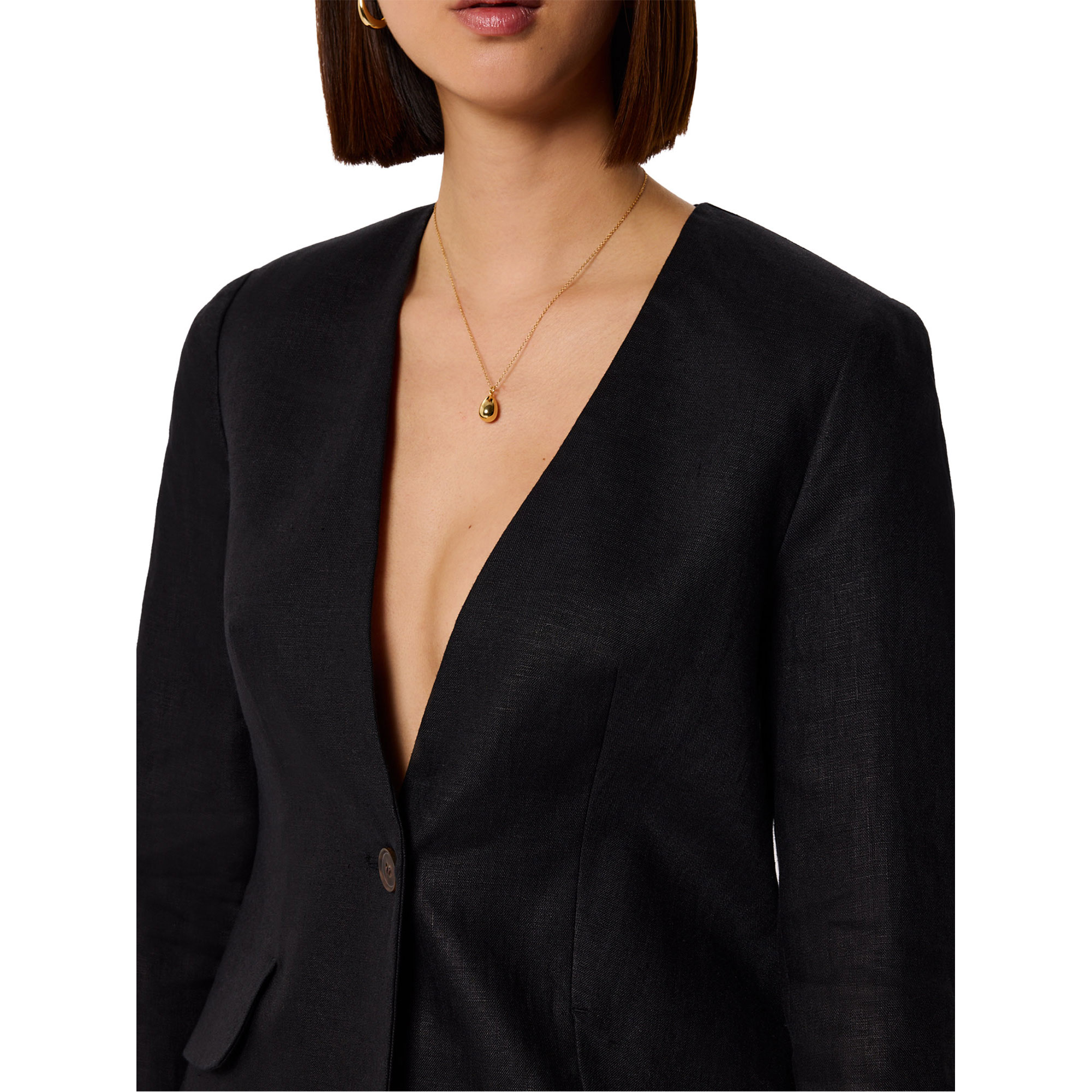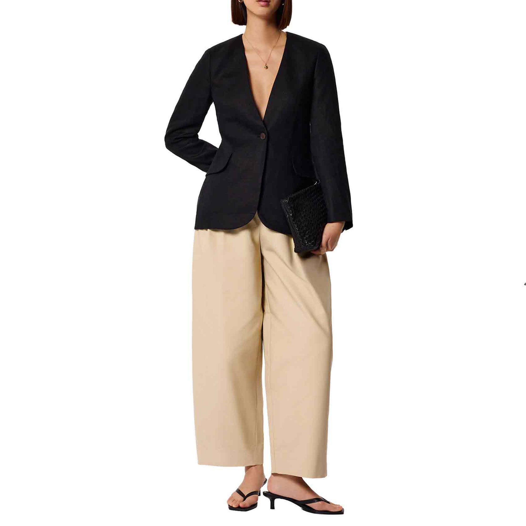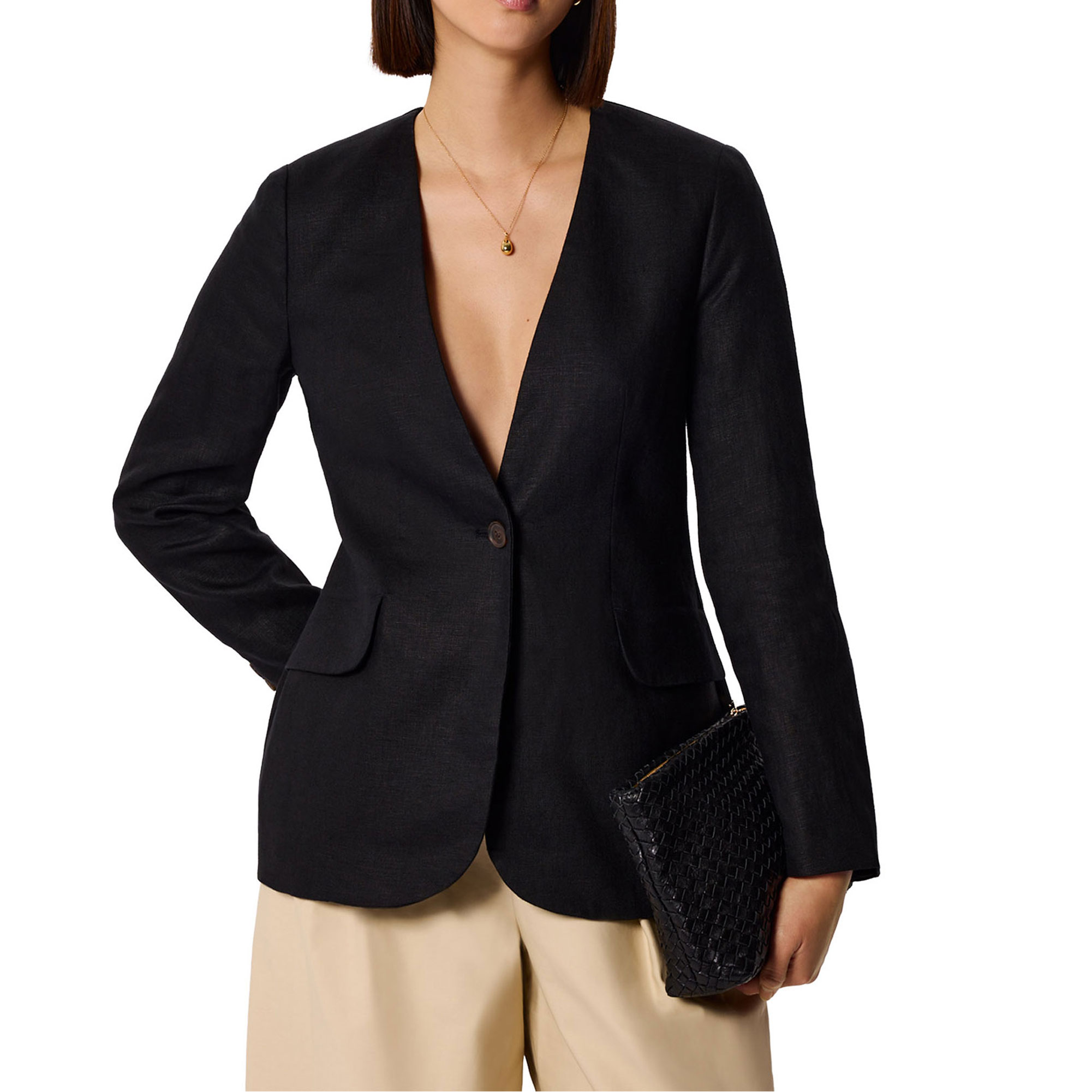 WHISTLES Collarless Single-Breasted Linen Blazer