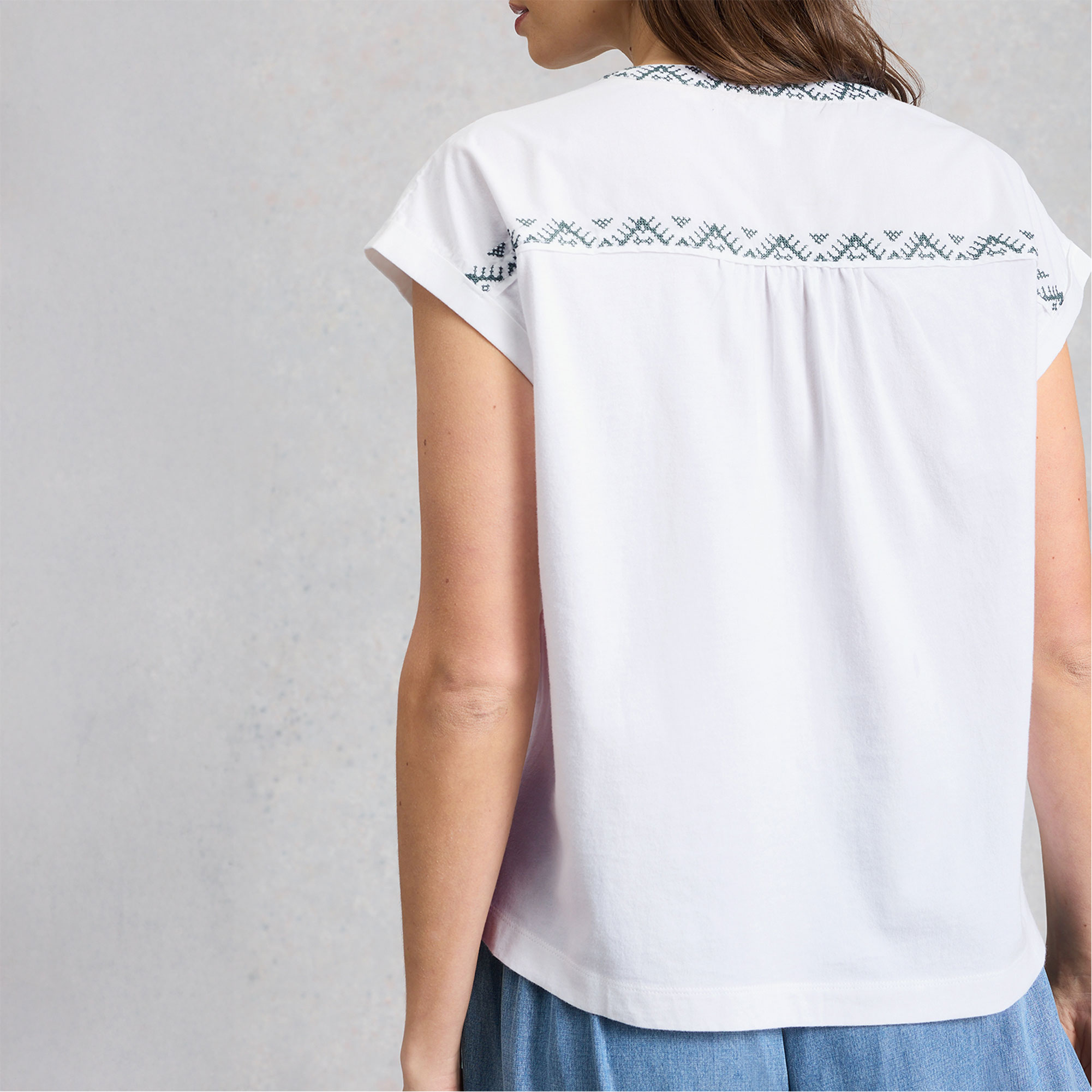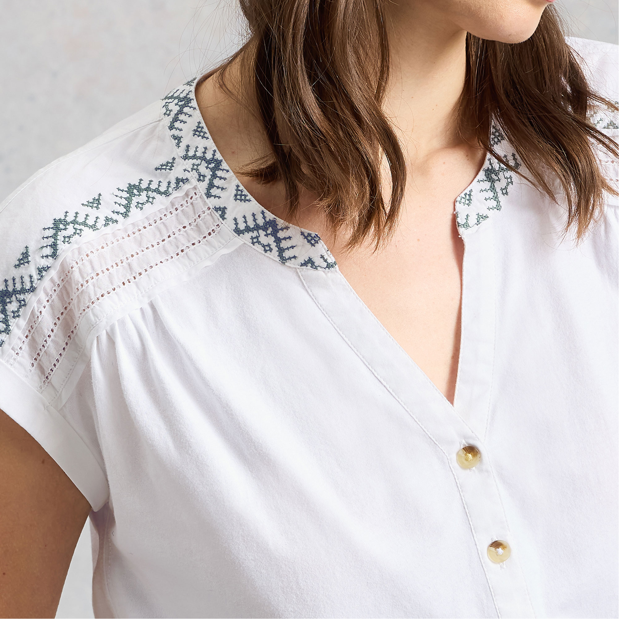 - Embroidered shoulder detailing, jersey fabric, button-through front