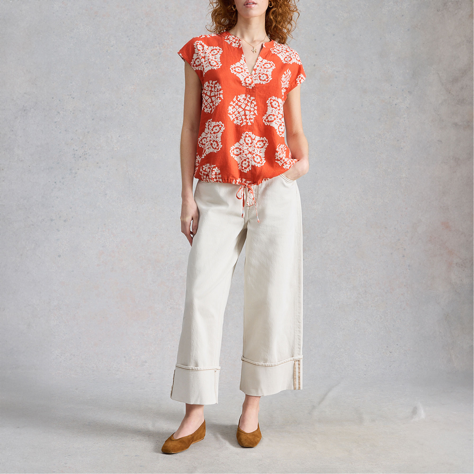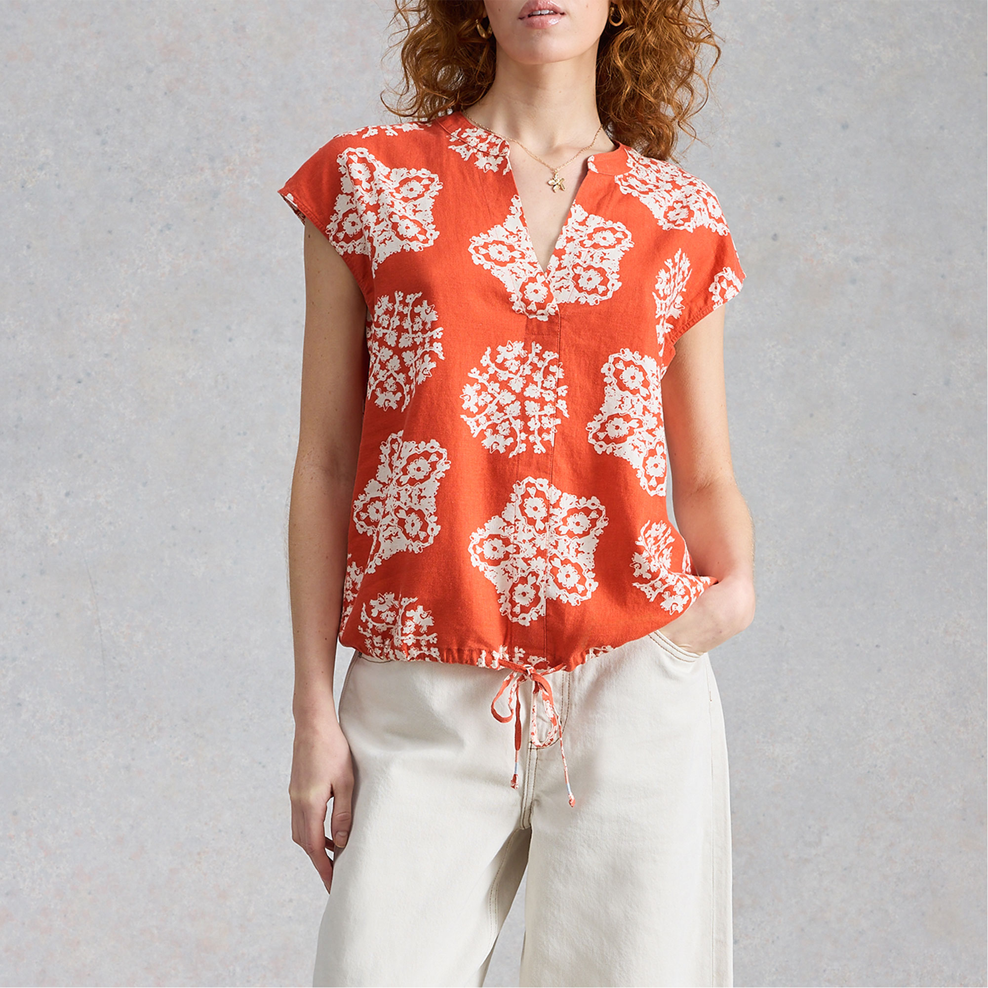 WHITE STUFF Nicole Printed Drawstring Blouse