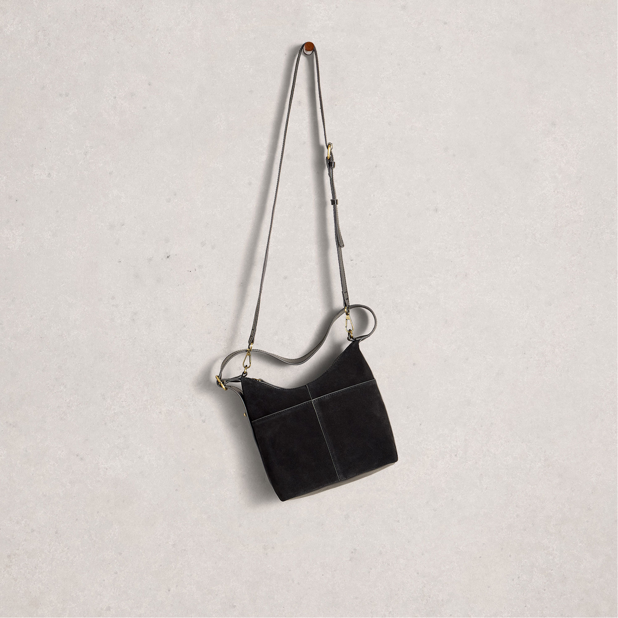 • Two-in-one style, front pocket, zip fastening, suede, mini crossbody style, adjustable crossbody strap, adjustable shoulder strap, mag-lock pocket
