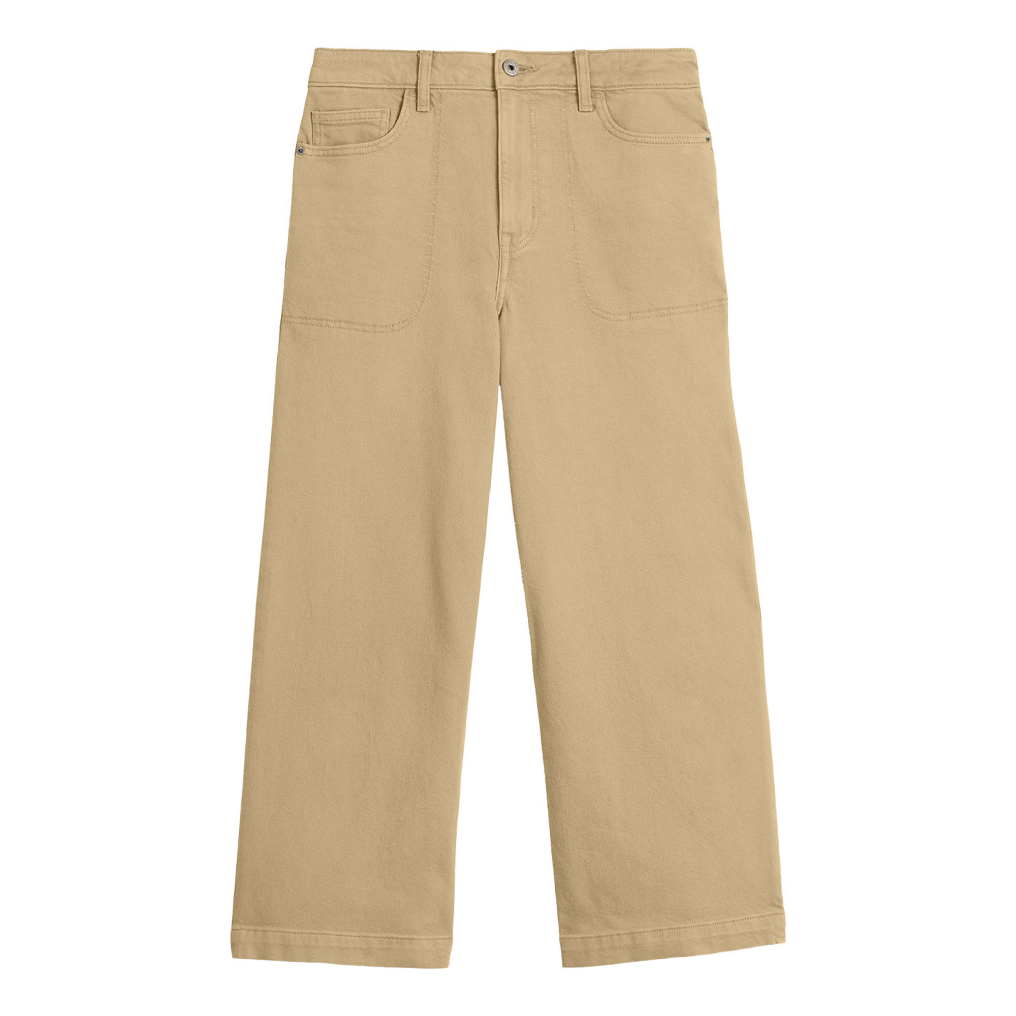 - Wide-leg silhouette, button and zip fastening, five-pocket style