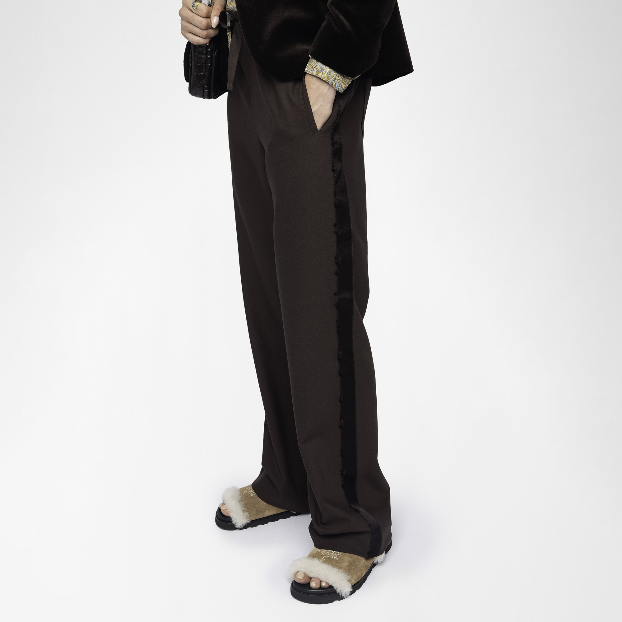 - Straight cut, track pant-inspired design, satin stripes, elasticated waistband