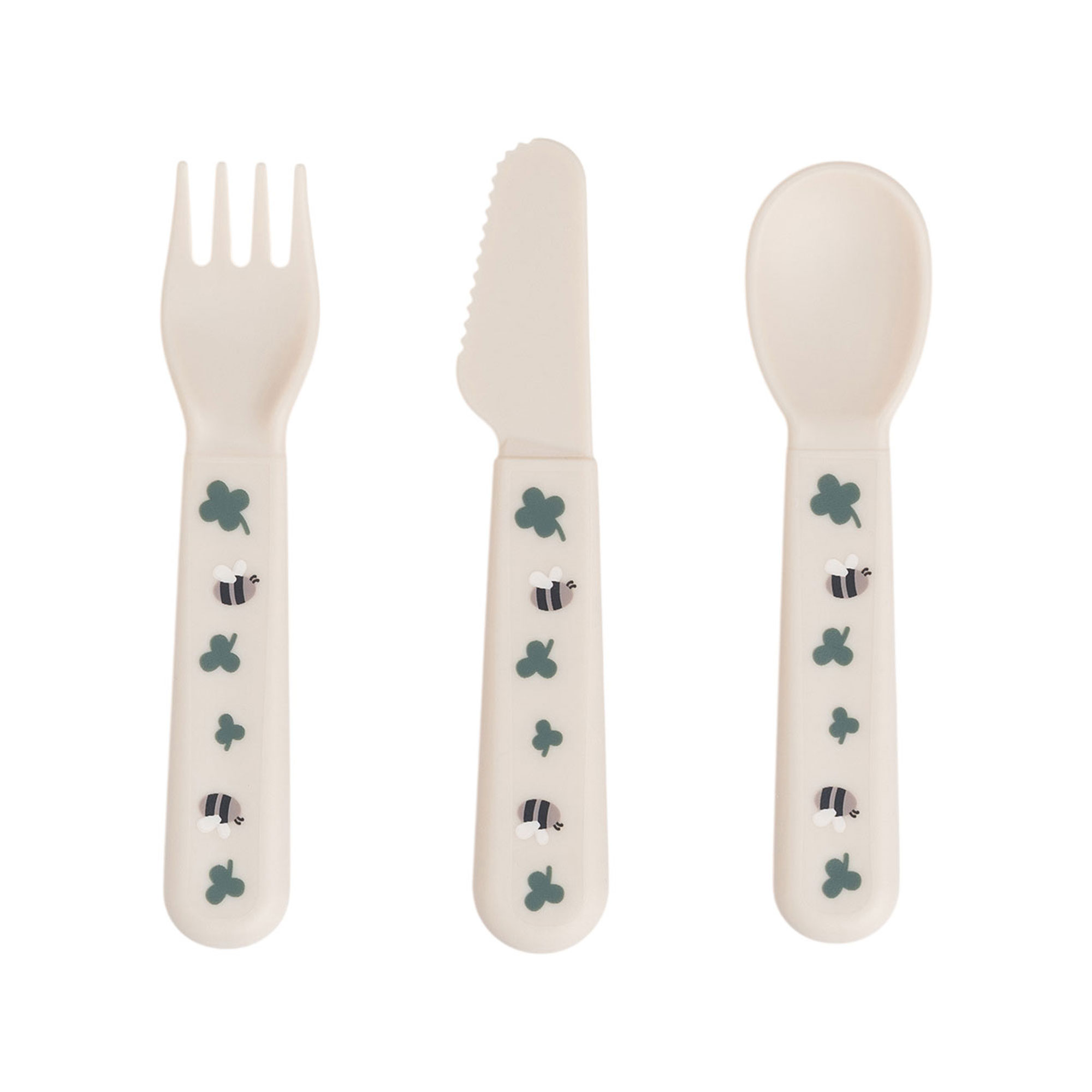 - Cutlery set, soft rounded edges safe for child use, well-dimensioned for little hands, clover motif