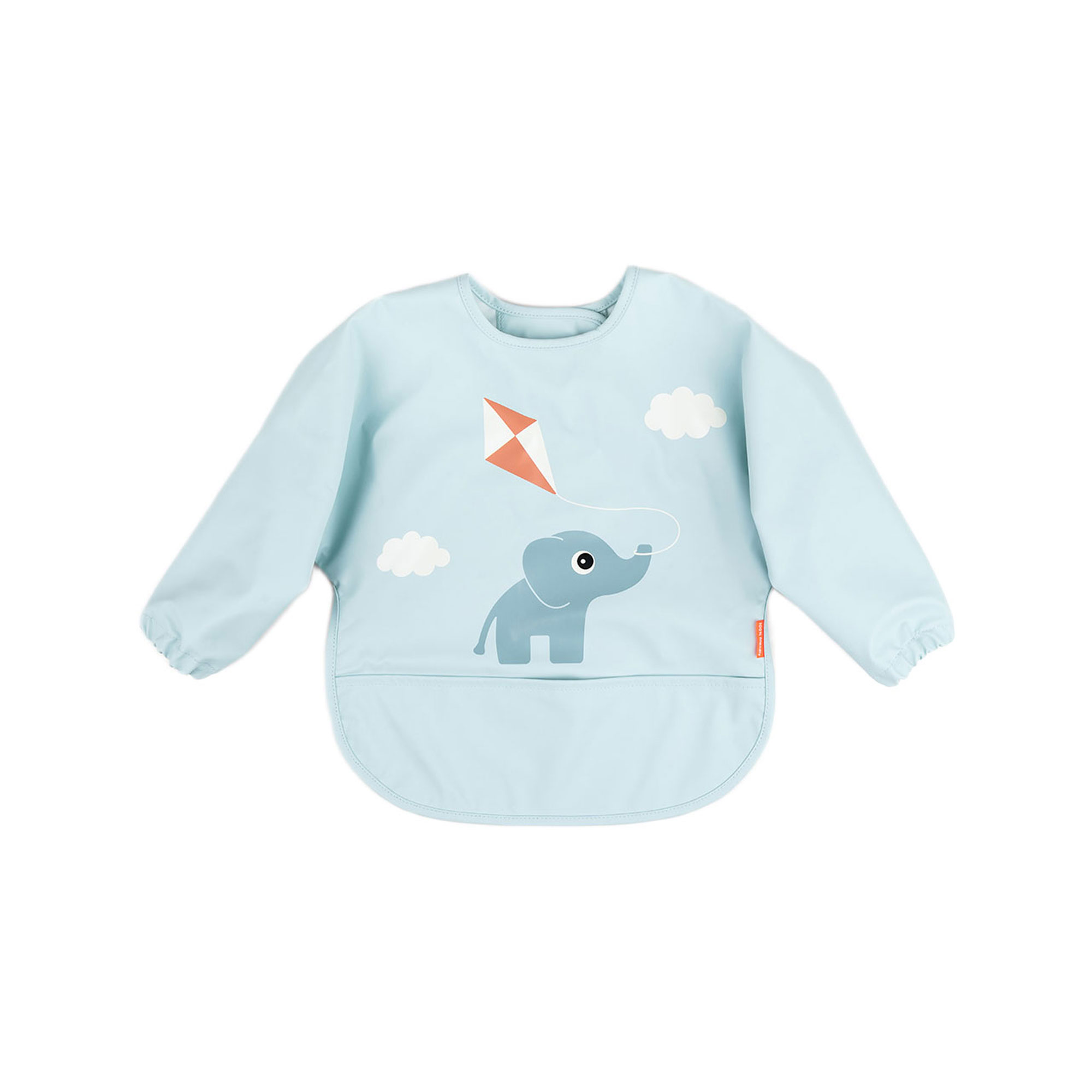 - Bib with motif of Elphee flying a kite, waterproof surface protects clothes and easy to wipe clean, protective sleeves cover clothes, pocket to catch dropped food, adjustable closure with snap buttons