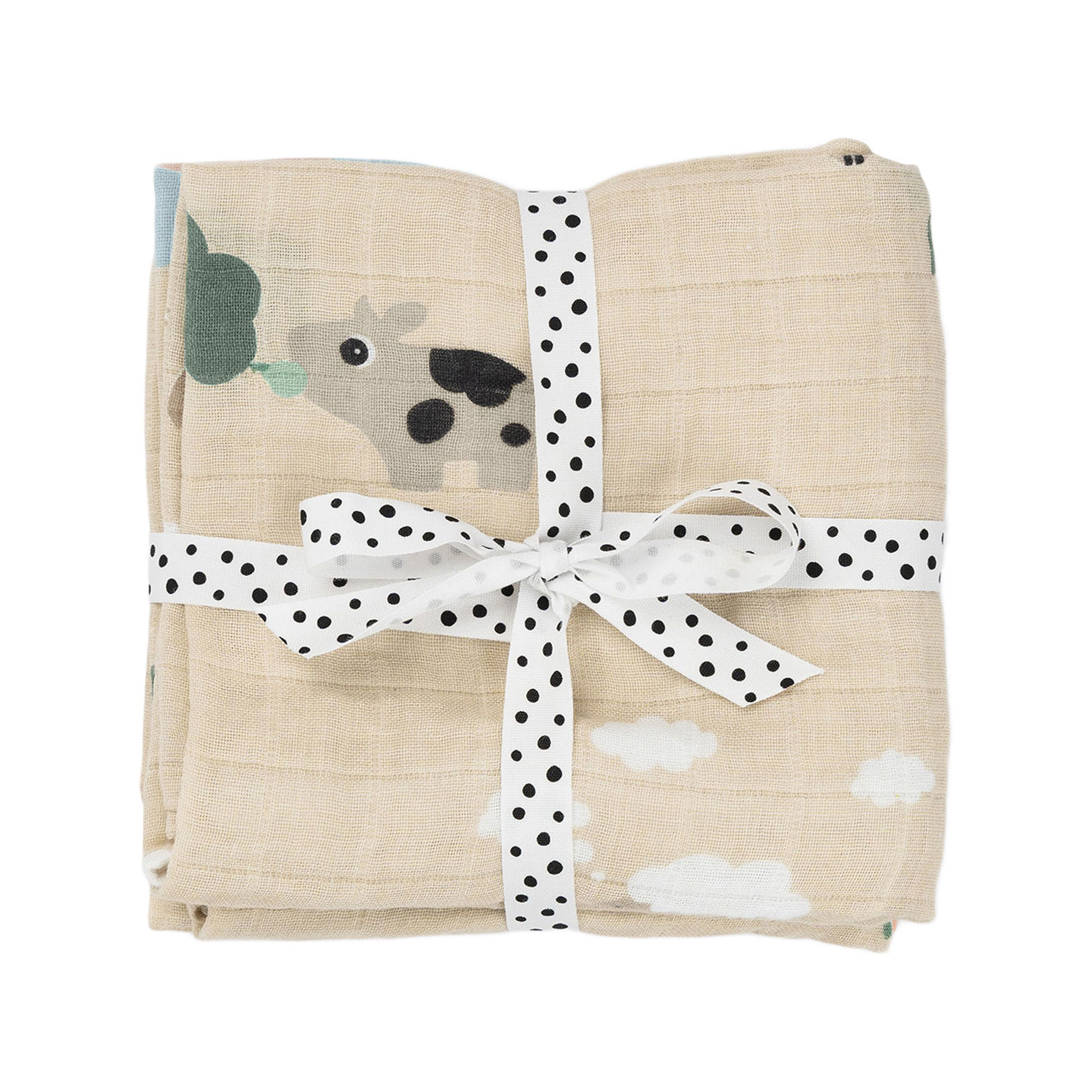 DONE BY DEER Two-Pack Tiny Farm Burp Cloth Set