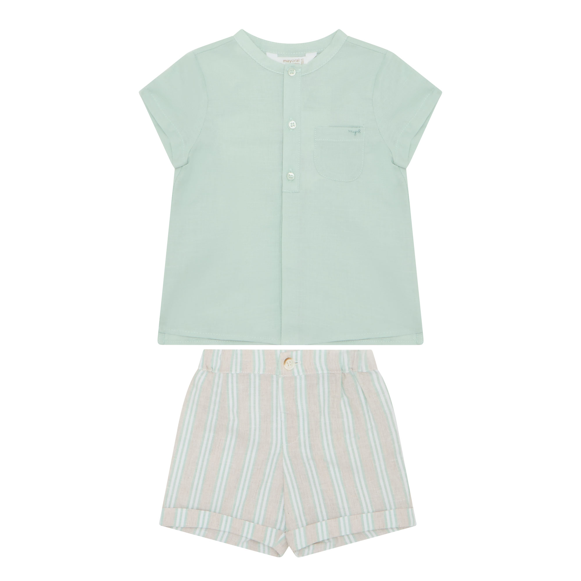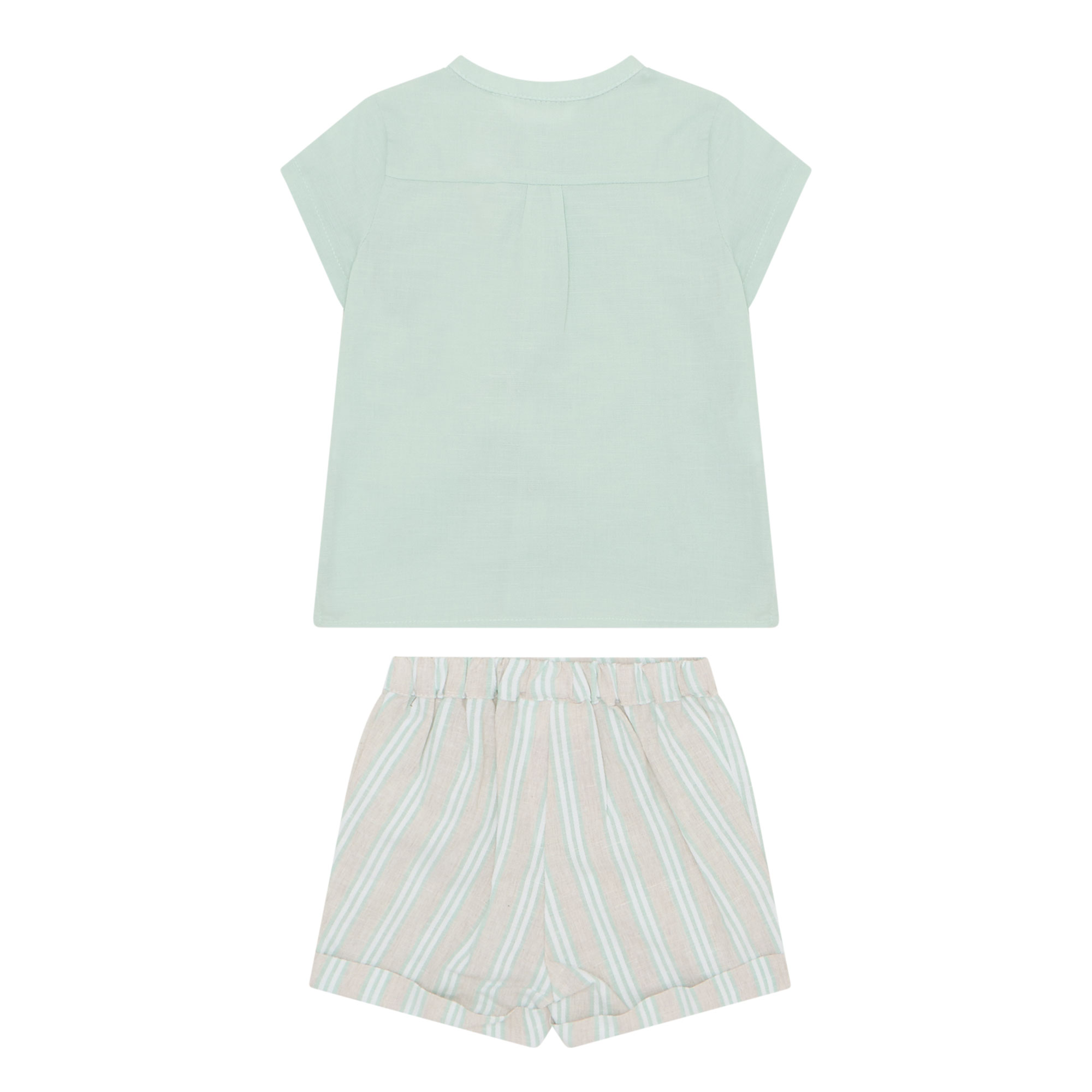 - Composition and Care: Shirt: 100% cotton. Shorts: 76% cotton, 24% linen. Machine wash both pieces at 30 degrees