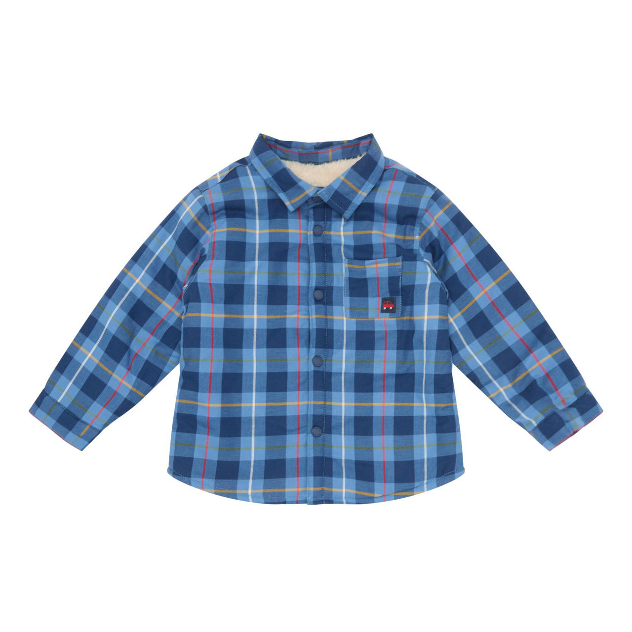 - Long sleeves, shirt collar, button fastenings, check print, chest pocket with car patch detail, buttoned cuffs, sherpa fleece lining.