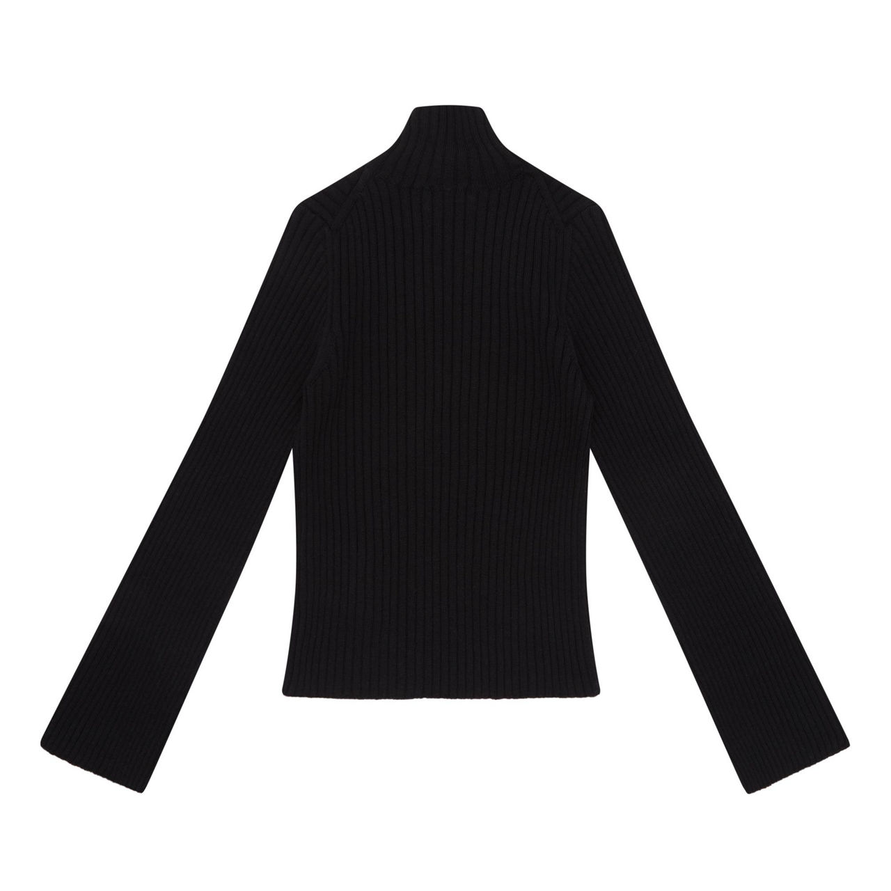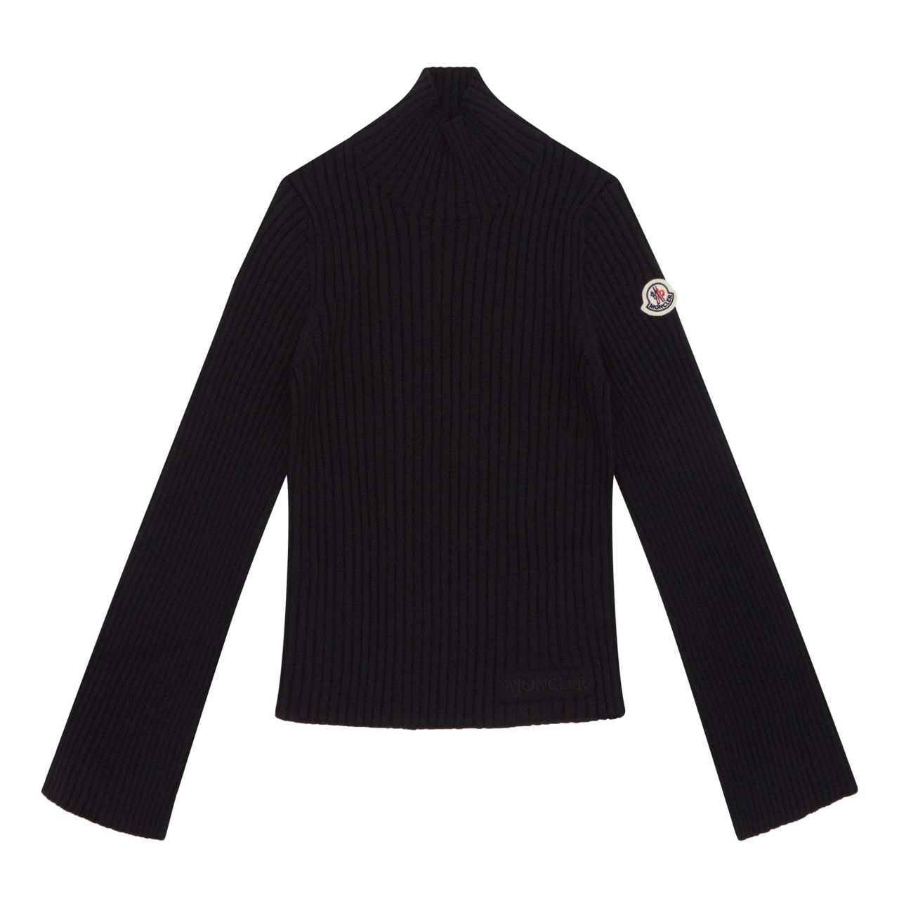 - Ribbed knit, turtleneck, long sleeves, logo patch