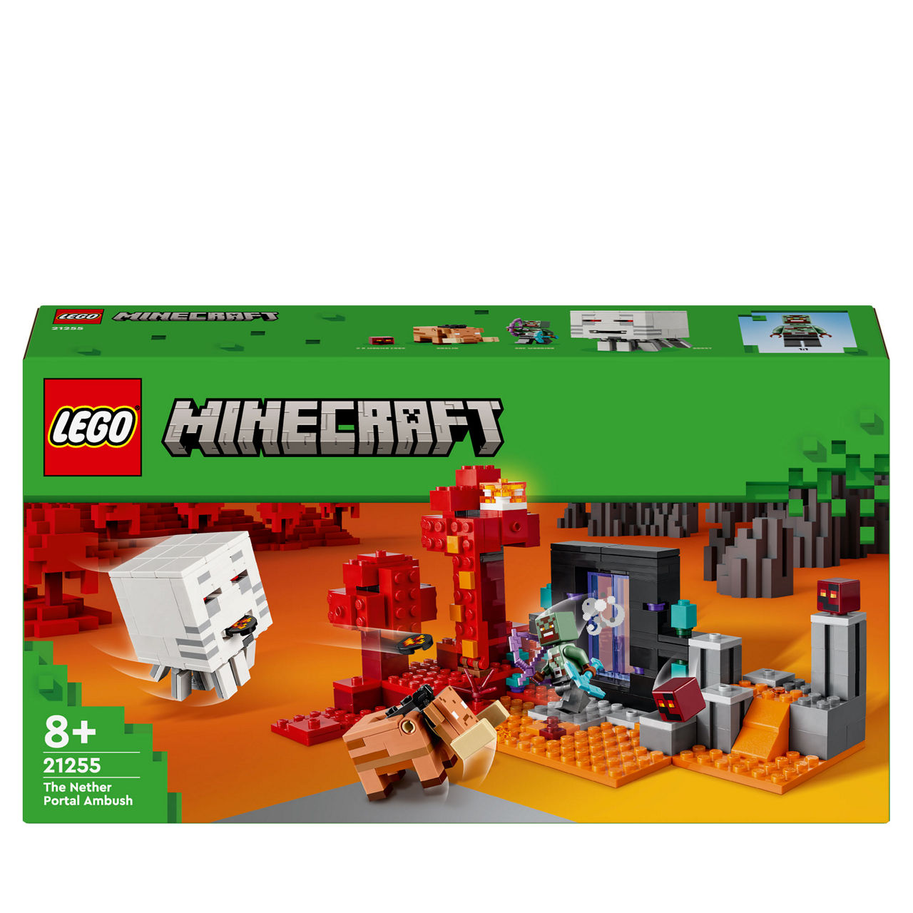 Bring the hugely popular Minecraft® game to life with this action-packed Nether portal toy. LEGO® Minecraft The Nether Portal Ambush toy set gives players endless build-and-play adventures featuring an iconic cast of Minecraft mobs. Kids who like Minecraft adventures will love this battle-scene model. Great gaming toy gift for 8-year-olds and over.