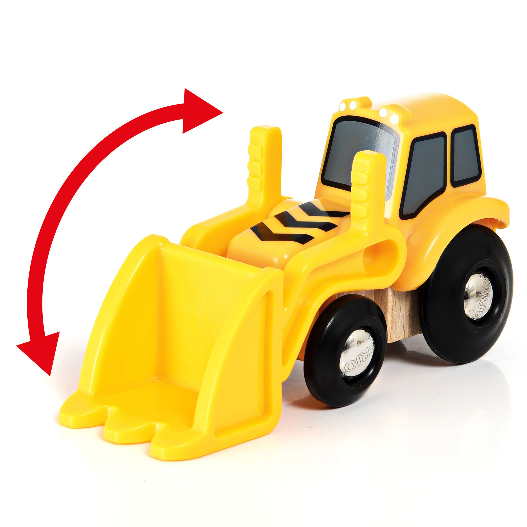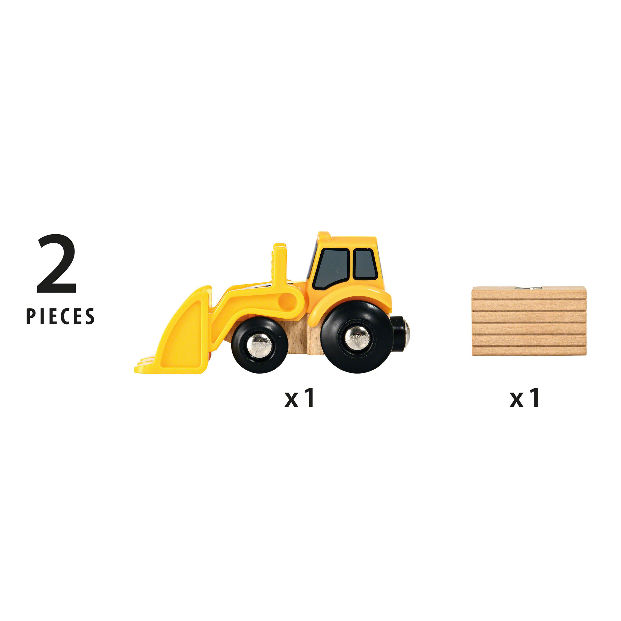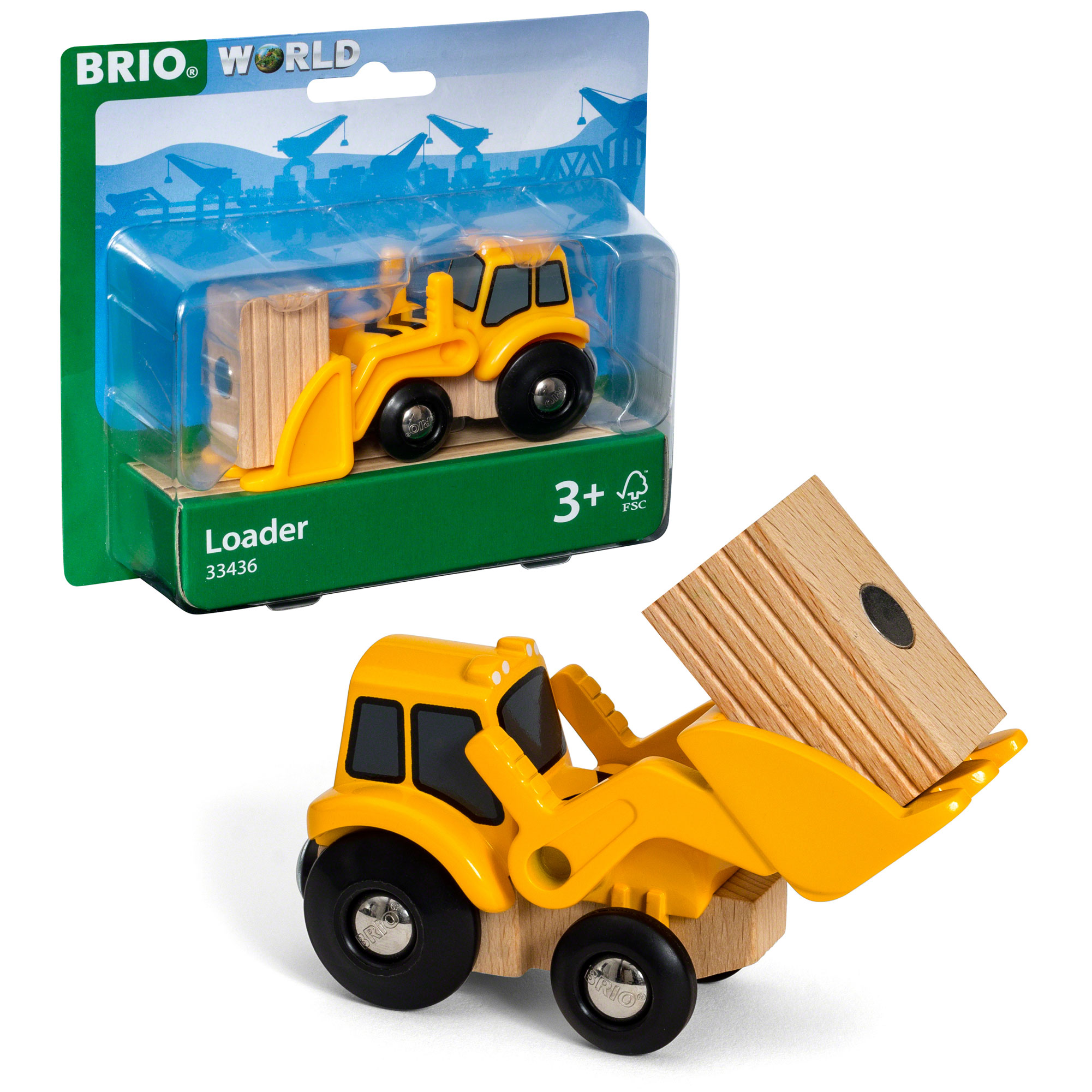 BRIO trains, engines, wagons, carriages, and vehicles feature the classic BRIO magnetic couplings for easy connection. The train sets, rails, accessories, and destinations include the classic wooden train track, allowing you to seamlessly expand your own BRIO World. This front-loader construction vehicle toy will lift the heaviest wooden loads in your BRIO World railway system. The Loader’s striking yellow colour and realistic graphics add to the sturdy look and feel, and the simple handgrip lever allows you to lift and carry cargo with ease. To the rear, the magnet connects the Loader to other BRIO World vehicles. This construction vehicle toy promotes fine motor skills and hours of imaginative fun.
