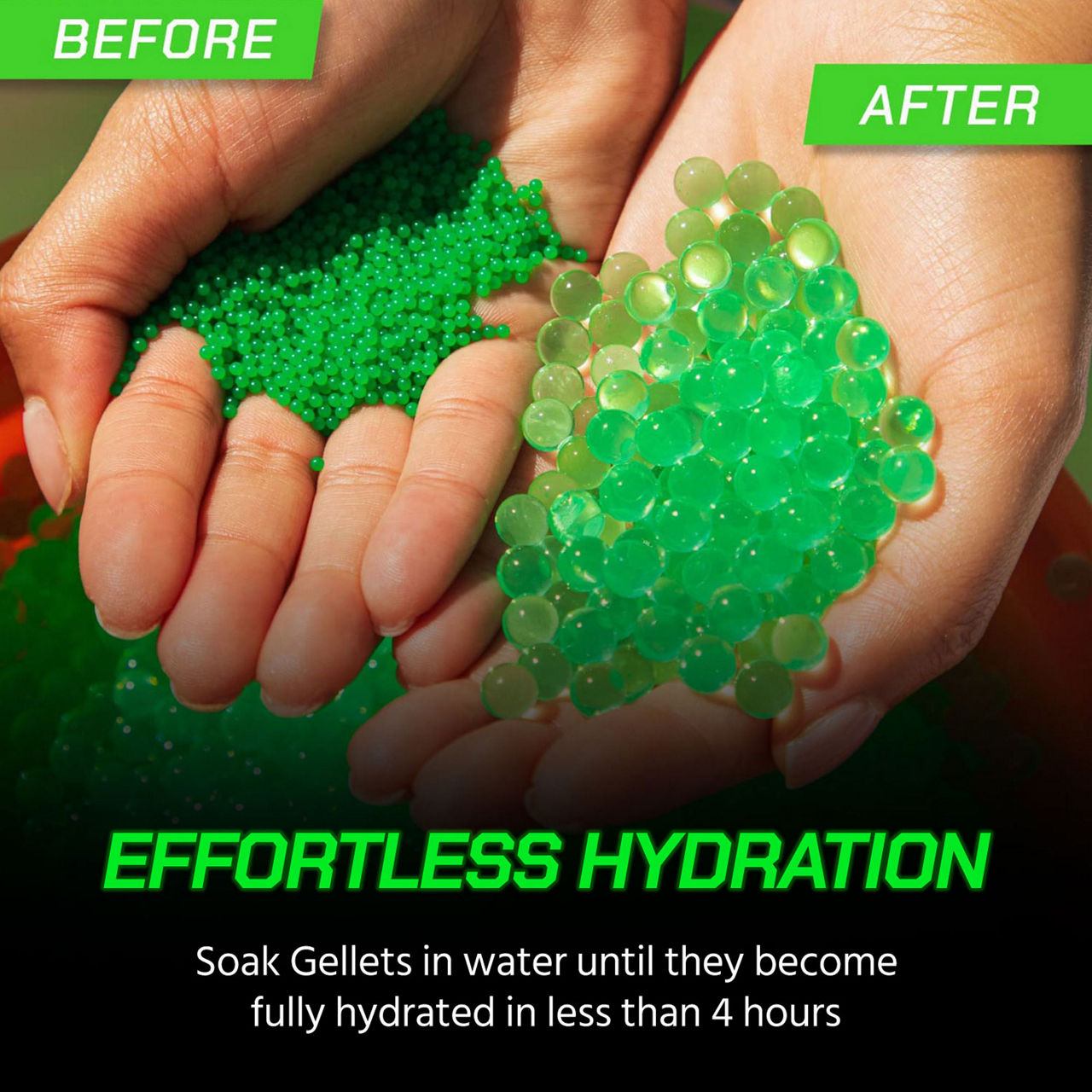- How to hydrate your gellets: pour the gellets into your gellet depot or a 1 gallon container, add 1 gallon of water per 1 pack of gellets, wait a minimum of 2 hours for your gellets to grow, strain your gellets. Hydrated gellets® will last up to 2 weeks in an airtight container. Fully submerge the gellets® in water for storage of up to 3 months. Keep dehydrated gellets® dry until ready to use