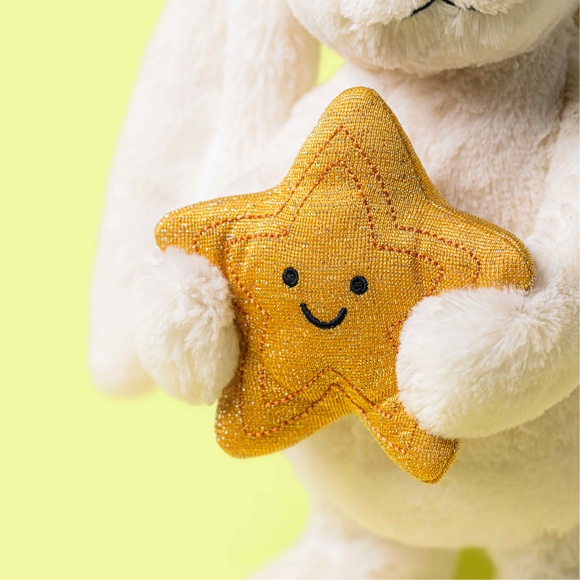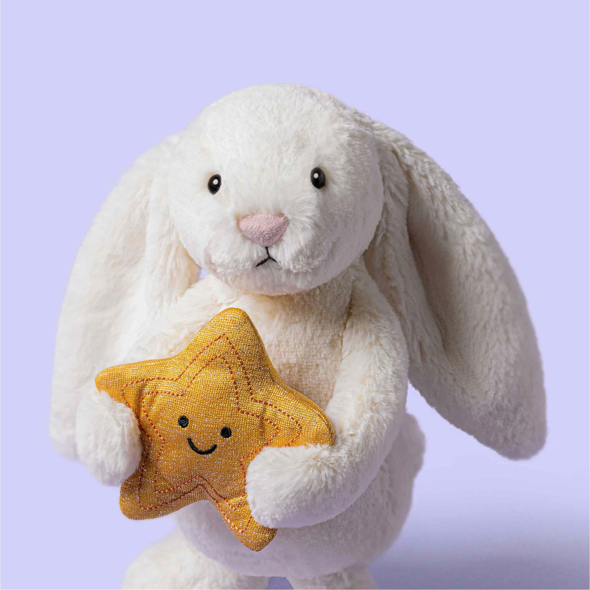 Cute, cuddly and colourful, Jelly Cat's soft toys and baby accessories can't help but make everyone smile. Designed with safety as well as fun in mind, these will be the toys your little one remembers fondly forever. This super soft Cream Bunny with iconic Bashful fur holds on to a smiling gold star to celebrate a job well done.