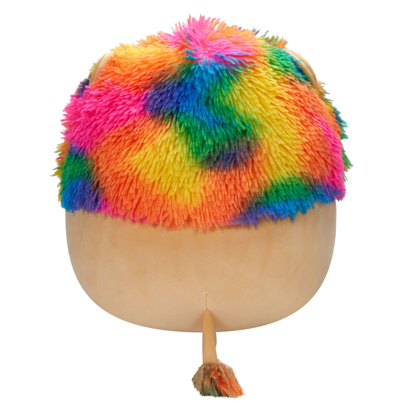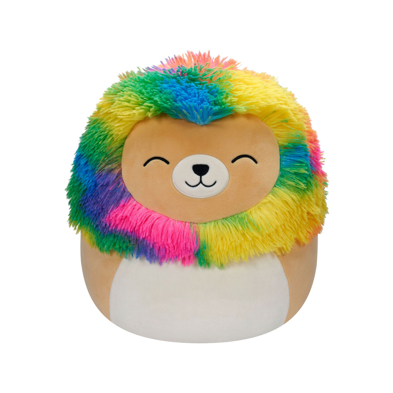 - Plush style, lion shape, rainbow-hued mane, medium size