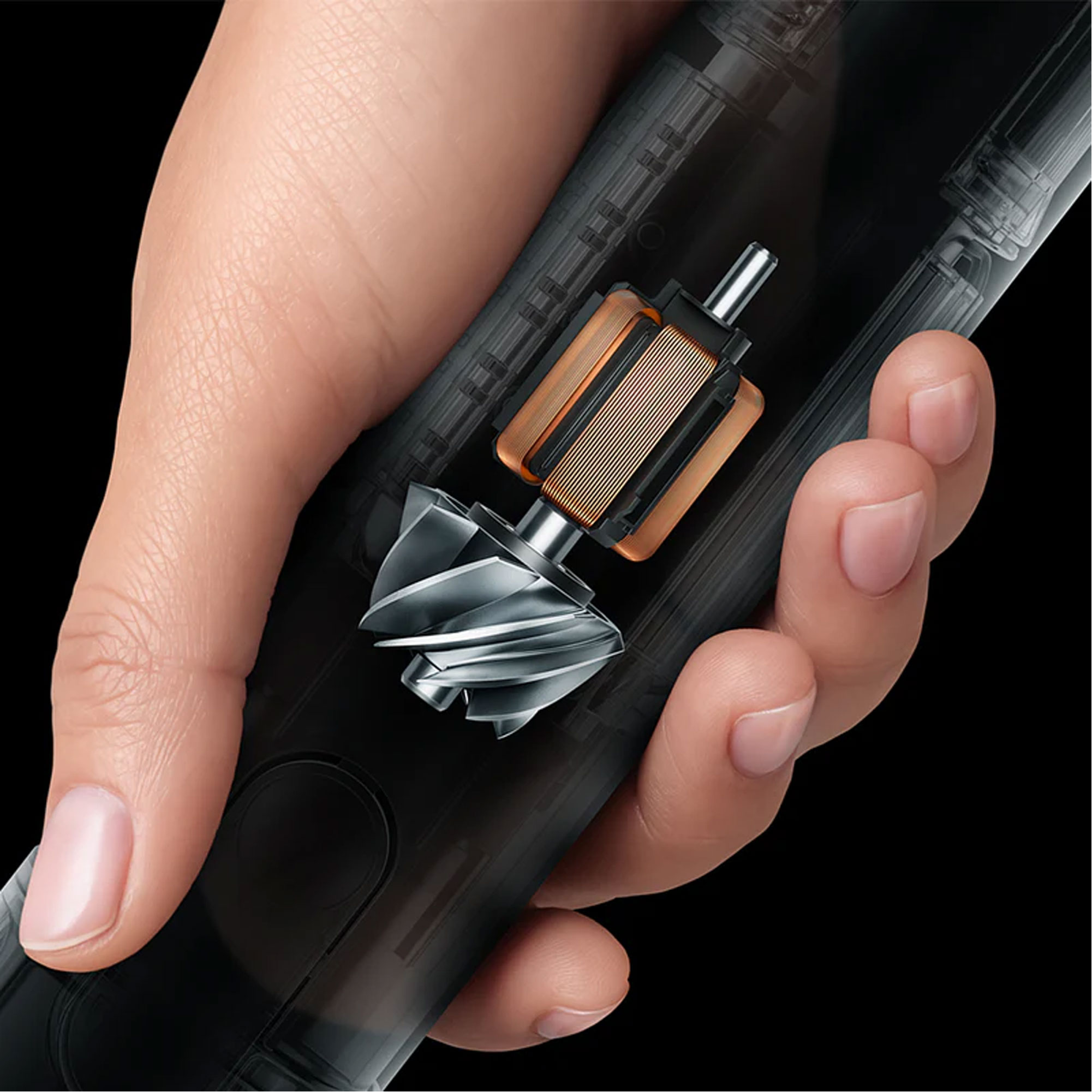 The result is the new Hyperdymium 140k motor – Dyson’s smallest and fastest vacuum motor to date –with a diameter of just 28mm. In such a small package, every component had to be engineered to the micron to work more efficiently, for greater power density. It is 34% more power dense than its predecessor, spinning at up to 140,000RPM to generate 55AW of powerful suction on the Dyson PencilVac.