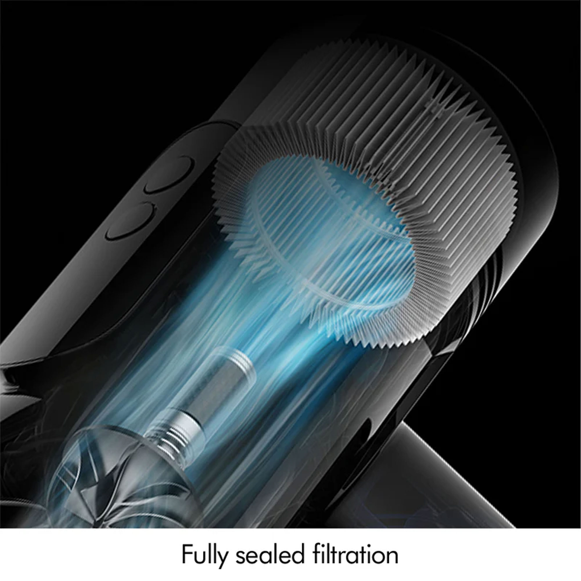 Swappable 7-cell lithium battery delivers 60 minutes of fade-free suction.
