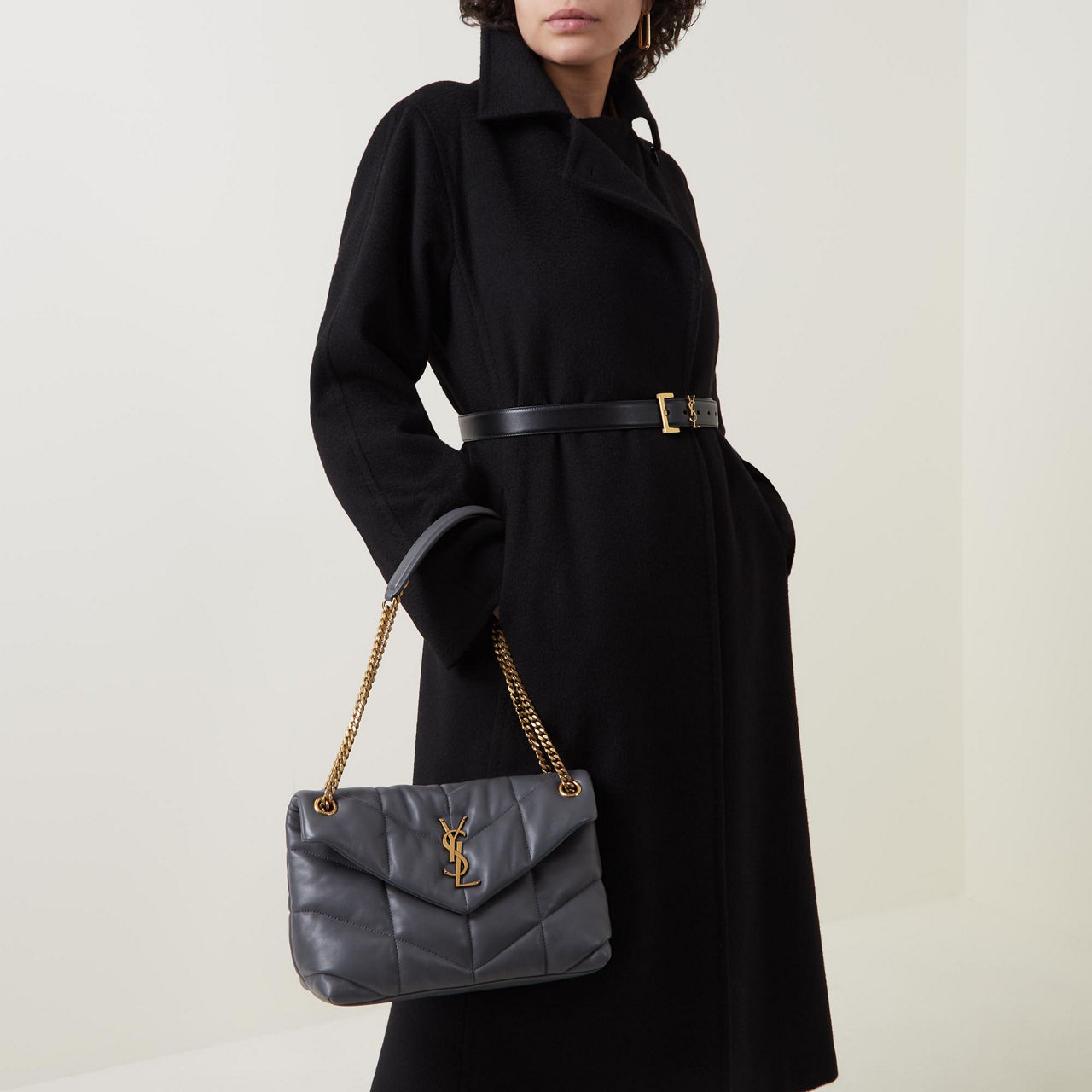 A sumptuous design from Saint Laurent, the Puffer small bag is crafted from buttery soft lamb's leather with gold-tone hardware in the form of a YSL logo detail. This shoulder bag exudes evening glamour, and it's spacious yet compact interior can comfortably carry your essentials.