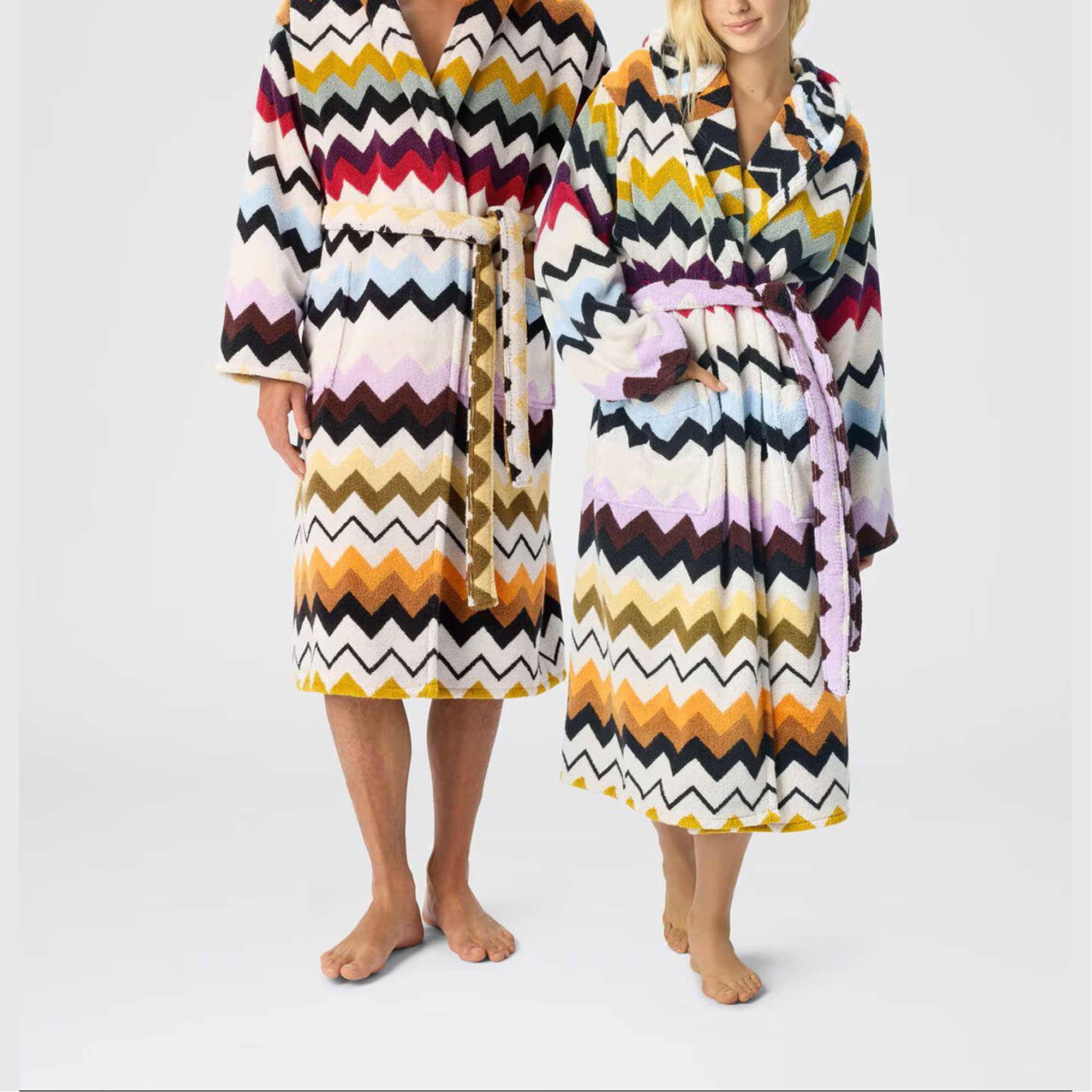 The Murrina bathrobe from Missoni shows all the qualities of wonderful Italian style and craftsmanship. The signature zig zag pattern combines with a luxurious deep pile cotton terry towelling, for a robe that is glamorous and comfortable.