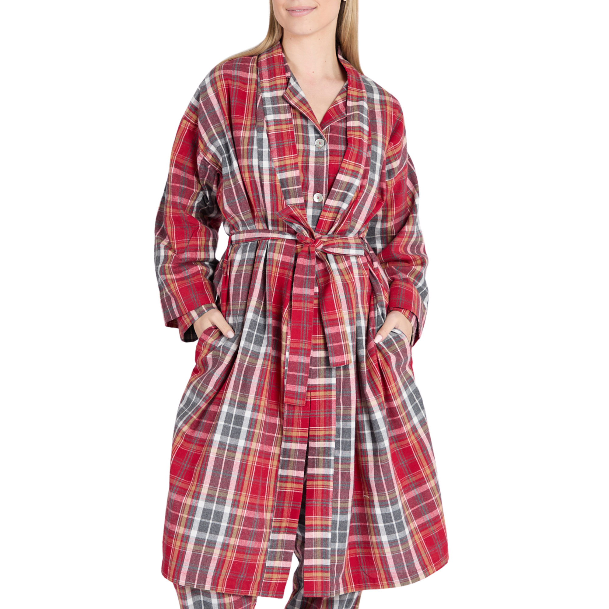 This Tartan Kimono Robe from FOXFORS is perfect for long evenings and lazy mornings. Made from soft flannel and finished with a matching belt and hanging loops, it will for keep you warm and cosy.