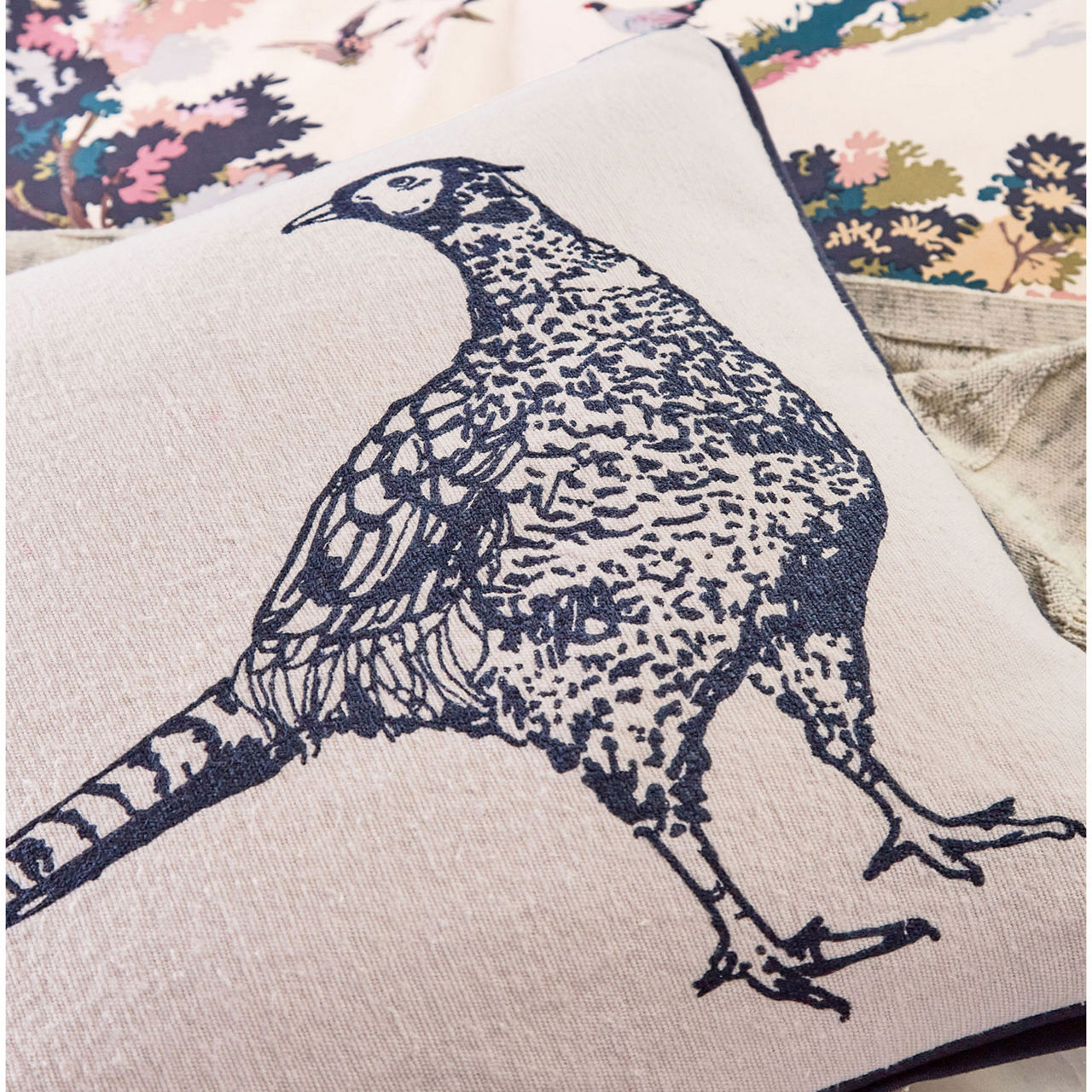 JOULES The Sustainable Edit Pheasant Cushion Navy