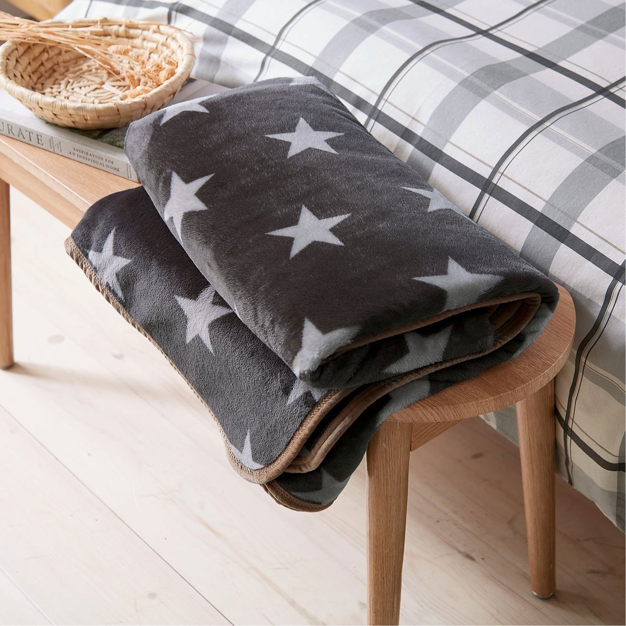 HELENA SPRINGFIELD Online Exclusive Star Fleece Throw Charcoal & Linen
