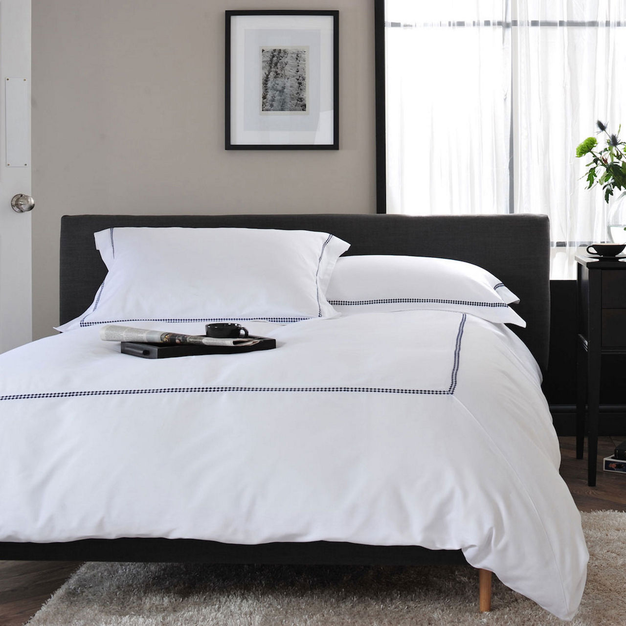 The TLC Double Diamond is a beautiful and elegant design with embroidered diamond stitching. 400 thread count combed cotton sateen. This bedding will elegantly stand out in the bedroom. Duvet Set includes pillowcase(s). Add in the oxford pillowcase for to complete the ultimate look.
