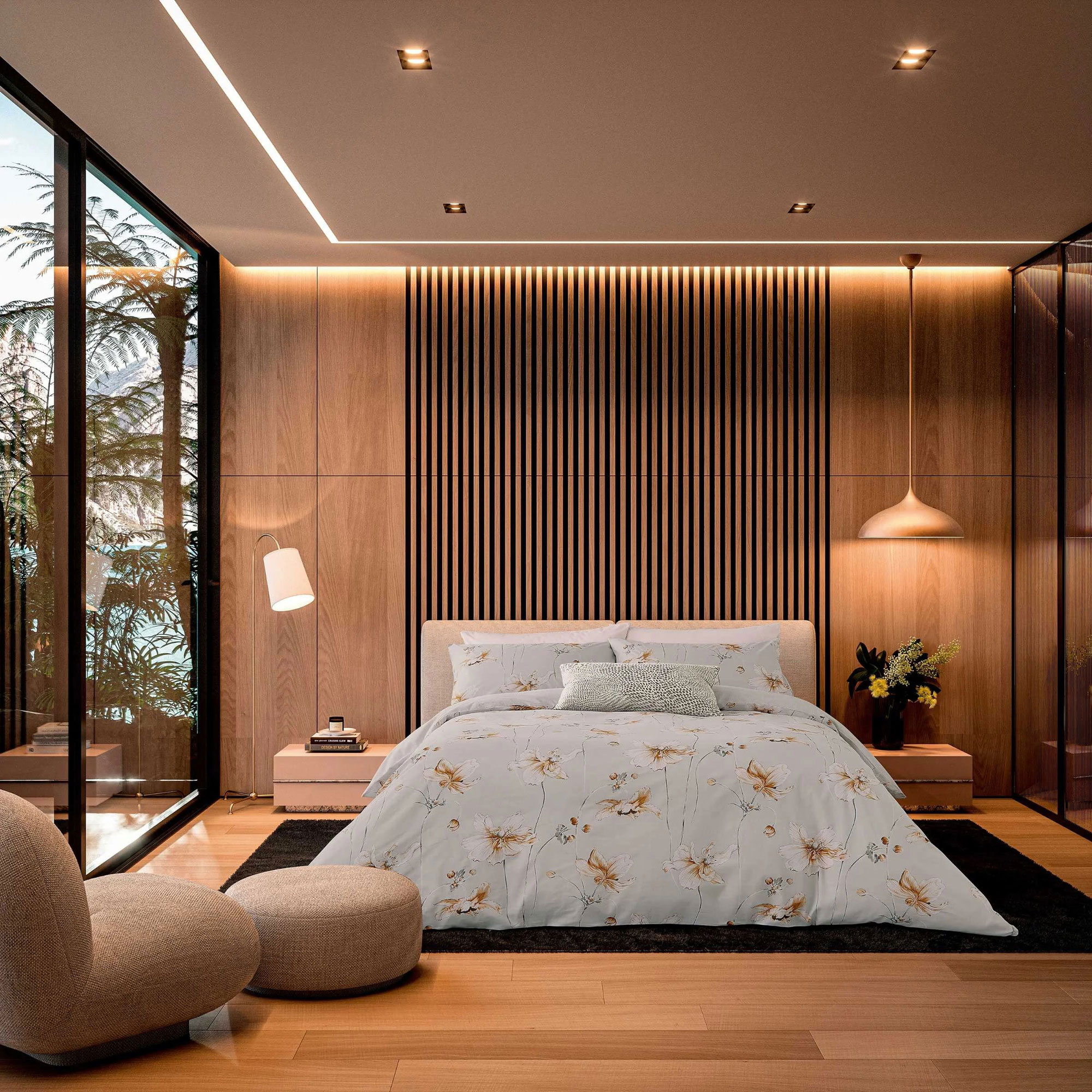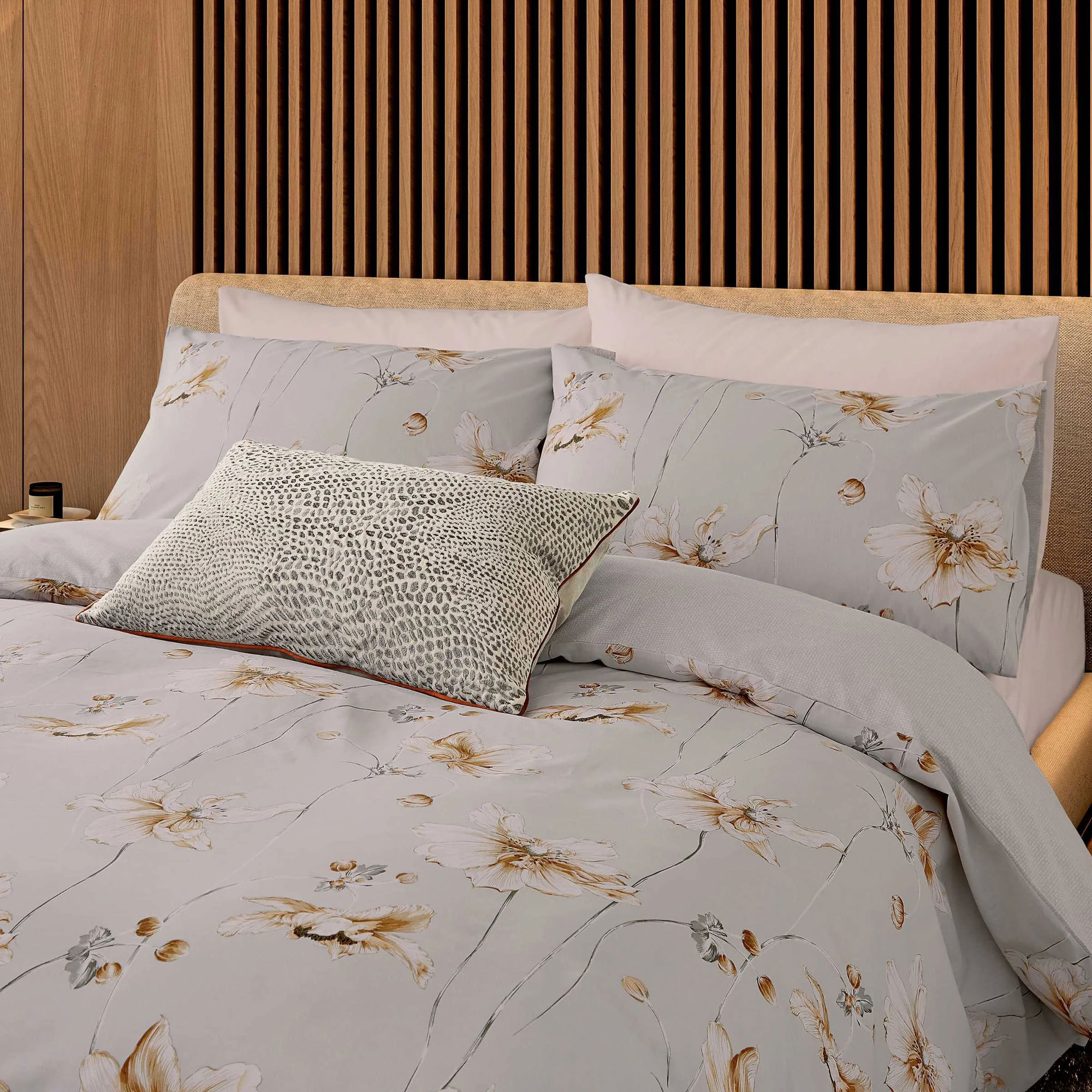 Flowers play a significant role in Hawaiian life. Used to create Lei, these beautiful hand woven decorative flower garlands are steeped in the rich traditions of the Hawaiian culture and can convey personalized messages of love, friendship and respect. This beautiful cotton bedding is scattered with a print of the Ilima flower, known as the island flower of O’ahu and symbolises good luck. The intricate details are captured in a palette of grey and russet tones with a coordinating textural effect print on the reverse.