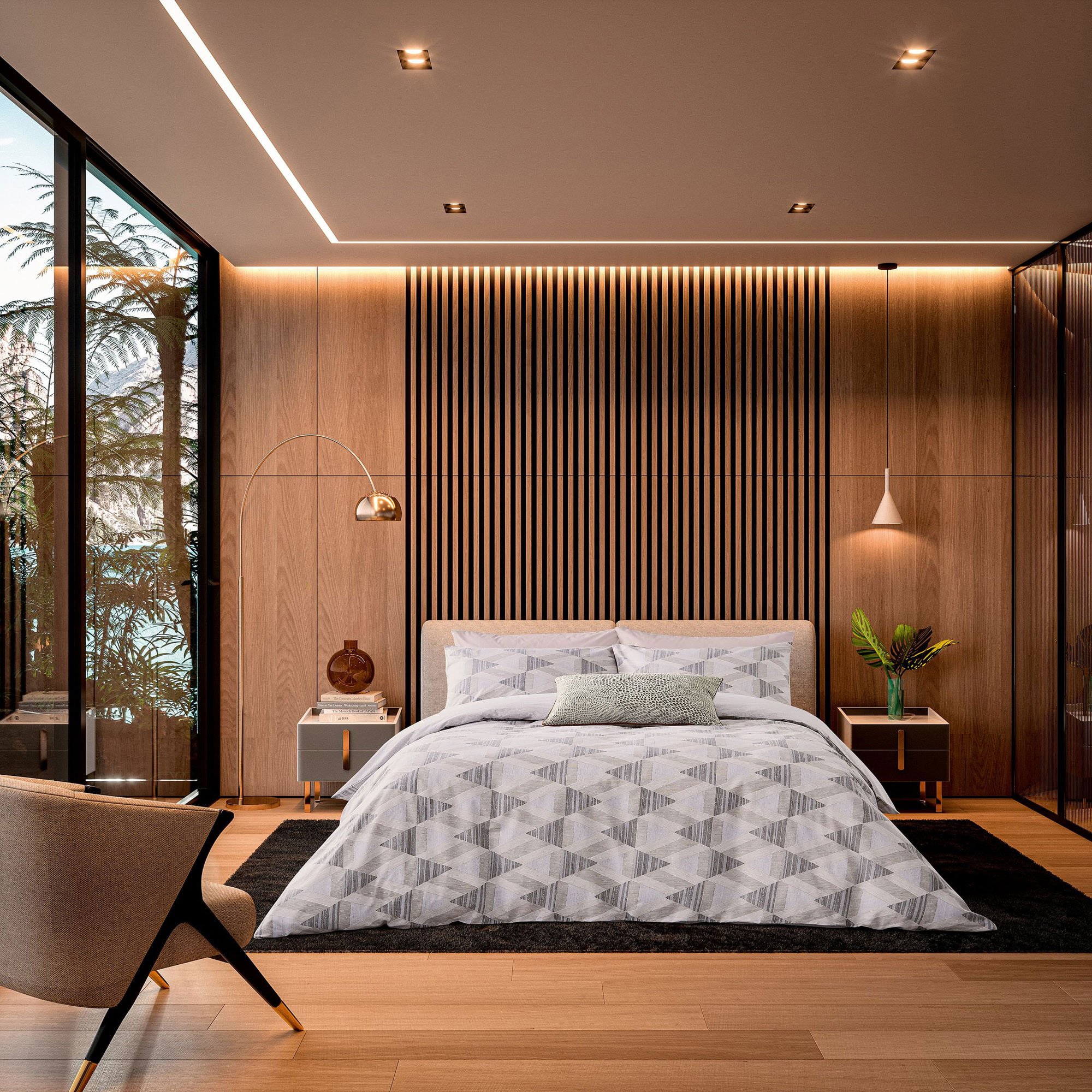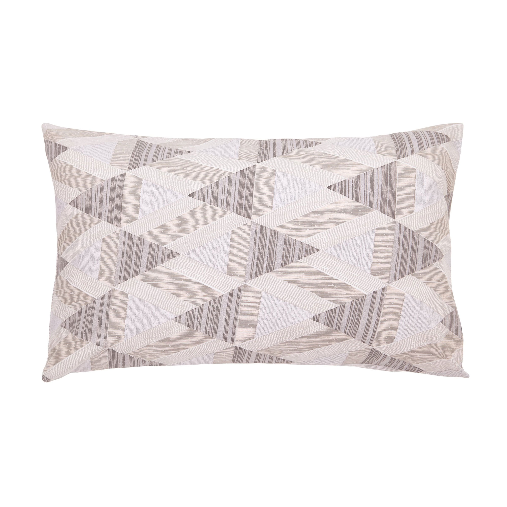 Pohaku features a linear diamond patterned print and refers to all native rocks, from coral reefs to volcanic lava that form not only the core of the Hawaiian Islands but the essential building materials of the original culture. These pōhaku were used to create a foundation for hale (houses), kuapa (fishpond walls), and heiau (temples). Coloured in a natural palette of taupe and stone, mixed with cooling ash, the reverse is a fine repeating horizontal line. The Glow embroidered cushion adds a little contrasting texture and pattern to the bed. Printed on pure cotton with a calendar finish to create a smooth, lustrous effect.