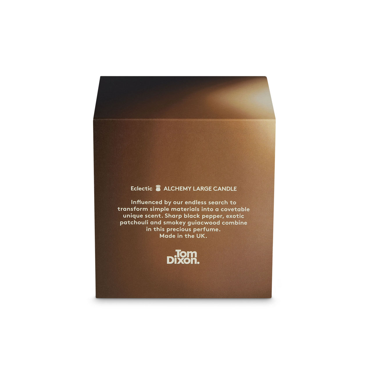 - Alchemy; influenced by the endless search to transform basic materials into a valuable substance, sharp black pepper, woody cypress, eucalyptus, exotic patchouli and smoky guaiac wood combine to create a precious perfume. Made with 10% fragrance. Burn Time: 48 hours. Scent Notes Top: Elemi, Eucalyptol and Black Pepper. Heart: Olibanum, Cypress and Pine. Base: Labdanum, Guaiacwood and Patchouli.