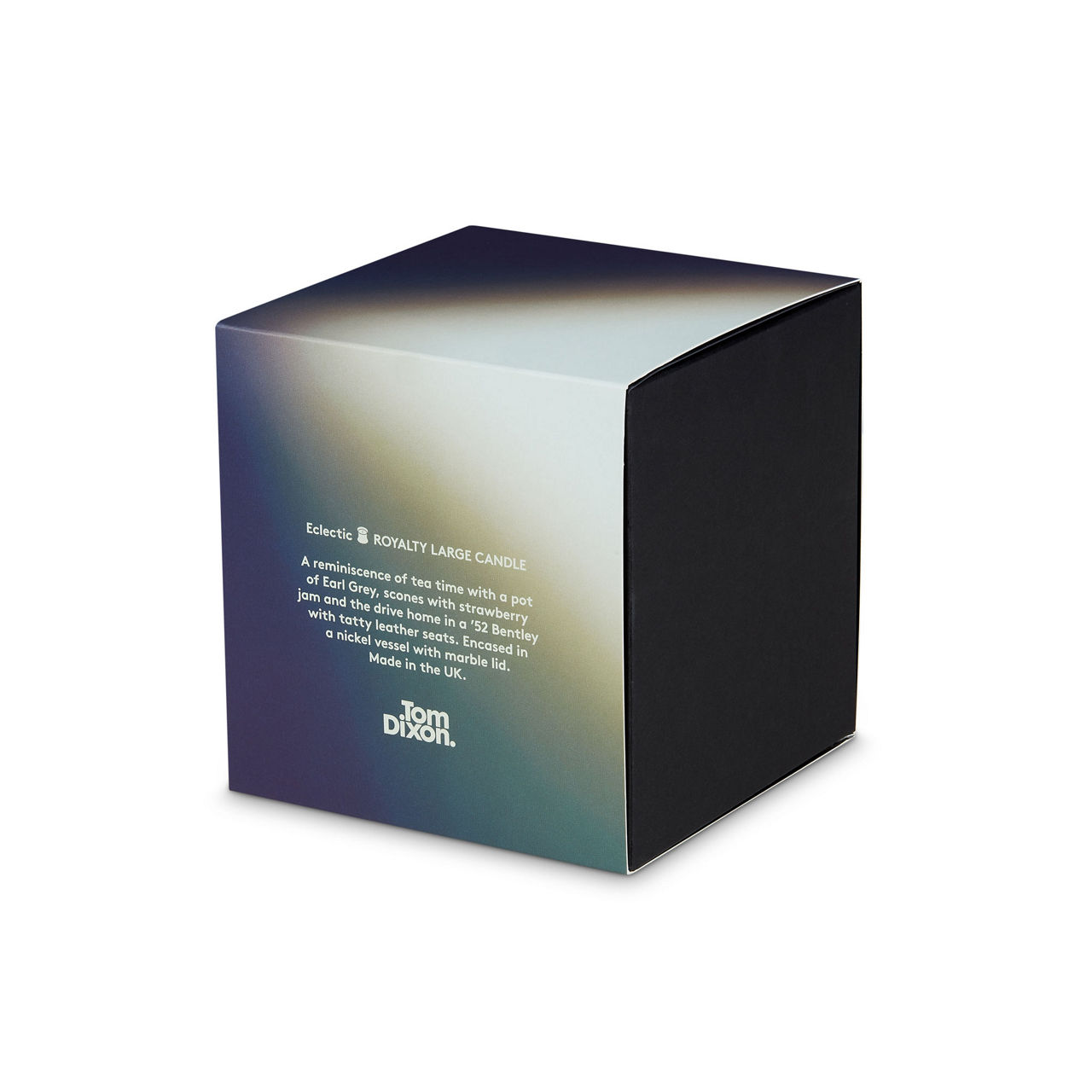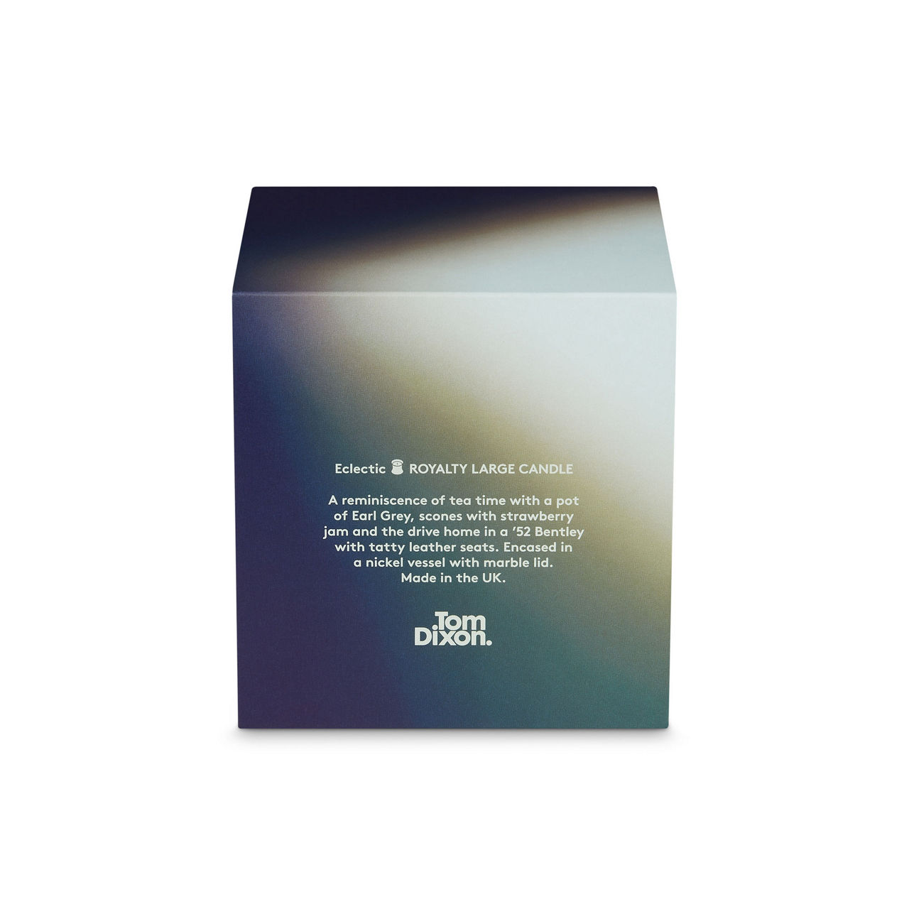 - Royalty; with floral notes and subtle hints of citrus, this scent is reminiscent of tea time with scones, strawberry jam and the drive home in a ‘52 Bentley with tatty leather seats. Made with 10% fragrance. Burn Time: 60 hours. Scent Notes Top: Cologne, Bergamot and Lemon. Heart: Earl Grey Tea, Verbena and Mint. Base: Cedar Wood.