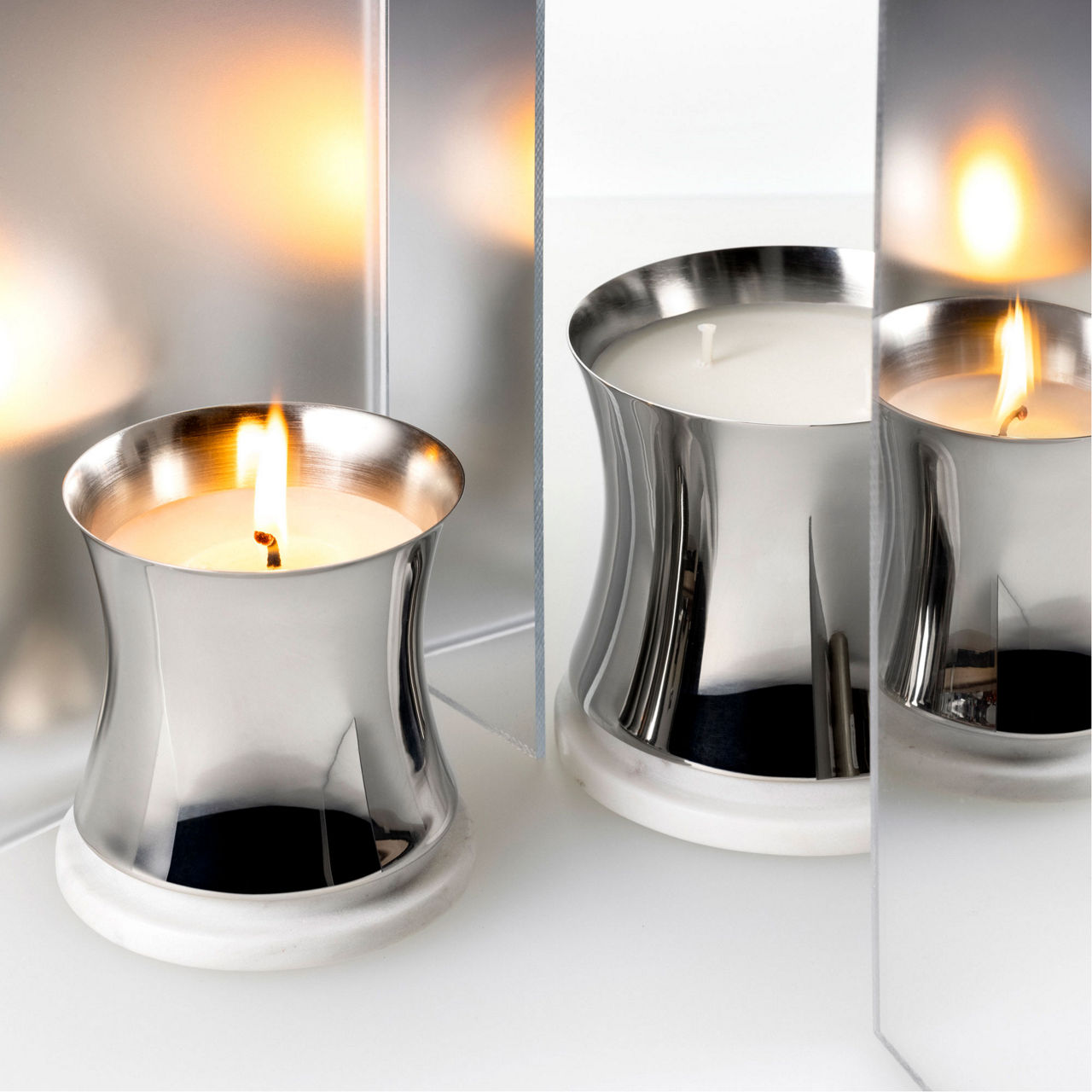 Hand poured in the UK with 100% natural ingredients, our popular floral fragrance captures the smell of tea time with scones, strawberry jam and the drive home in a ‘52 Bentley with tatty leather seats. This large candle is encased in a hand-spun silver vessel with a white marble lid which is designed with the intention for a second life - to be reused as a contemporary home accessory that lasts a lifetime.