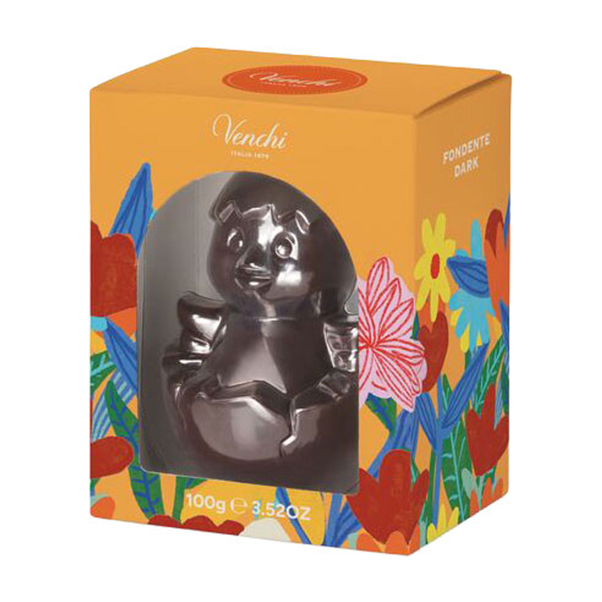 - Elegant 60% dark chocolate chick, delicious and perfect as a sweet surprise.