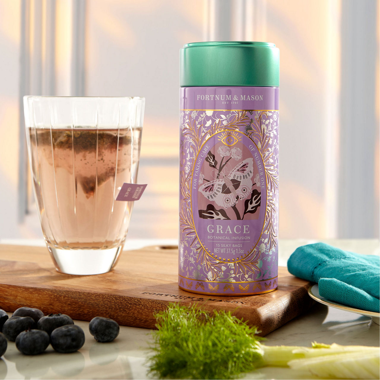 There is nothing quite like a cup of tea to relax or rejuvenate. The Fortnum and Mason Botanical Infusion collection blends combine delicious teas and soothing botanicals to suit your mood and time of day. Floral and fruity, the Grace infusion combines calming notes of oolong tea with hints of blueberries, calendula and goji berries. The perfect blend for "me time".