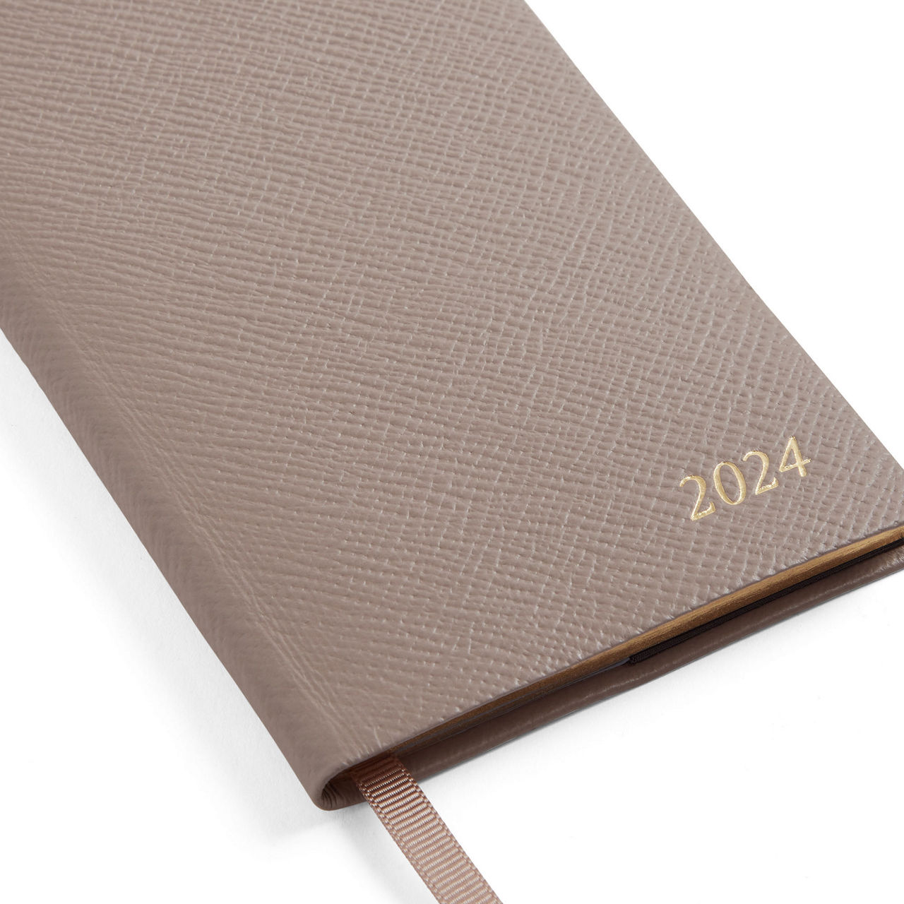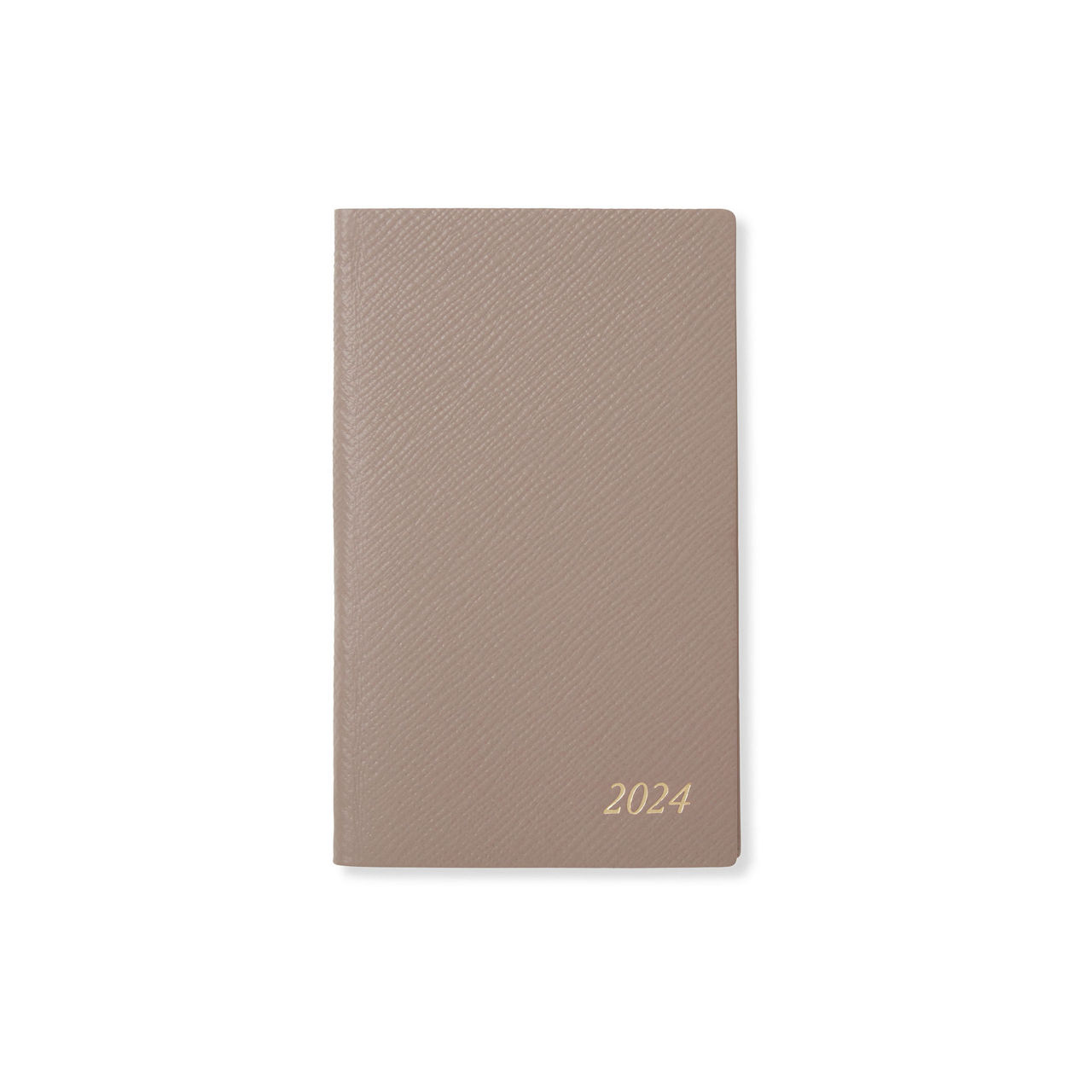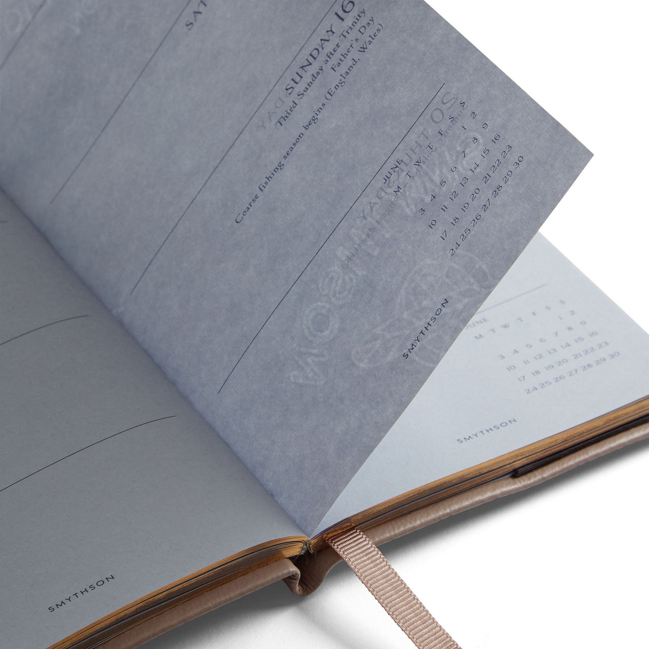 - Week-to-view layout, gilt-edged, pale blue Featherweight paper, perforated corners, slip pocket, runs from Monday 13th November 2023 to Sunday 19th January 2025