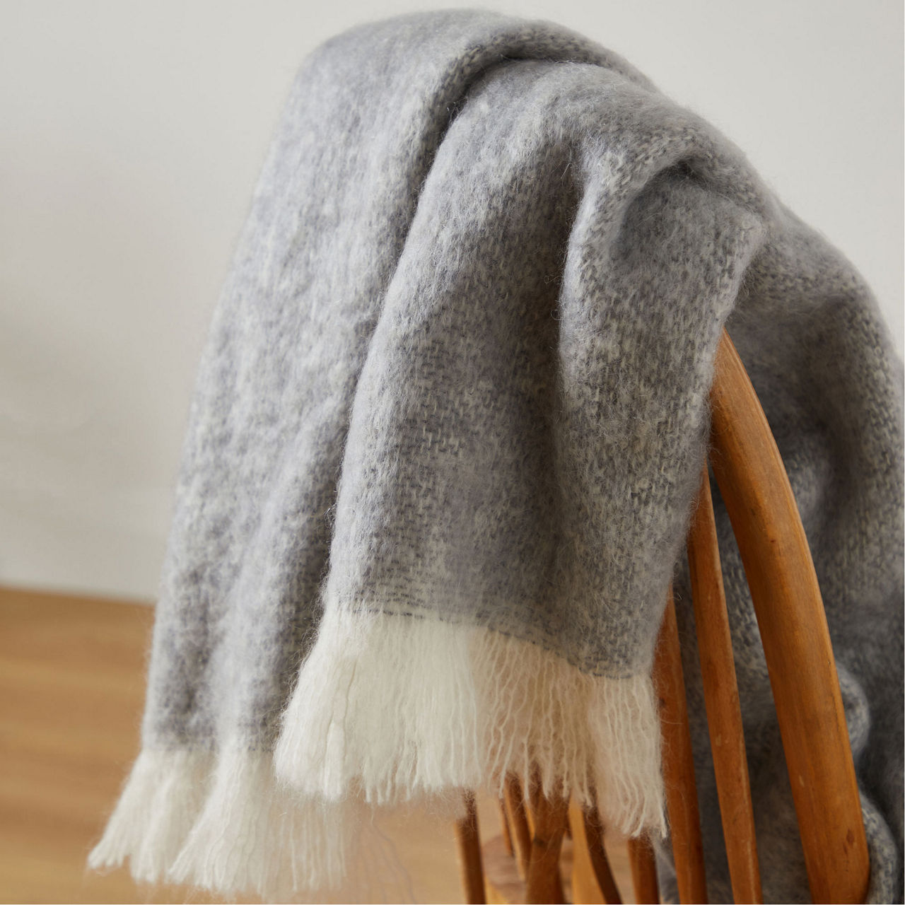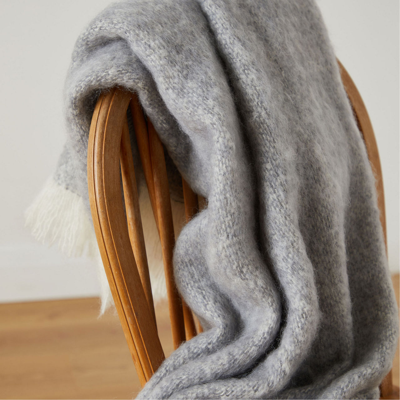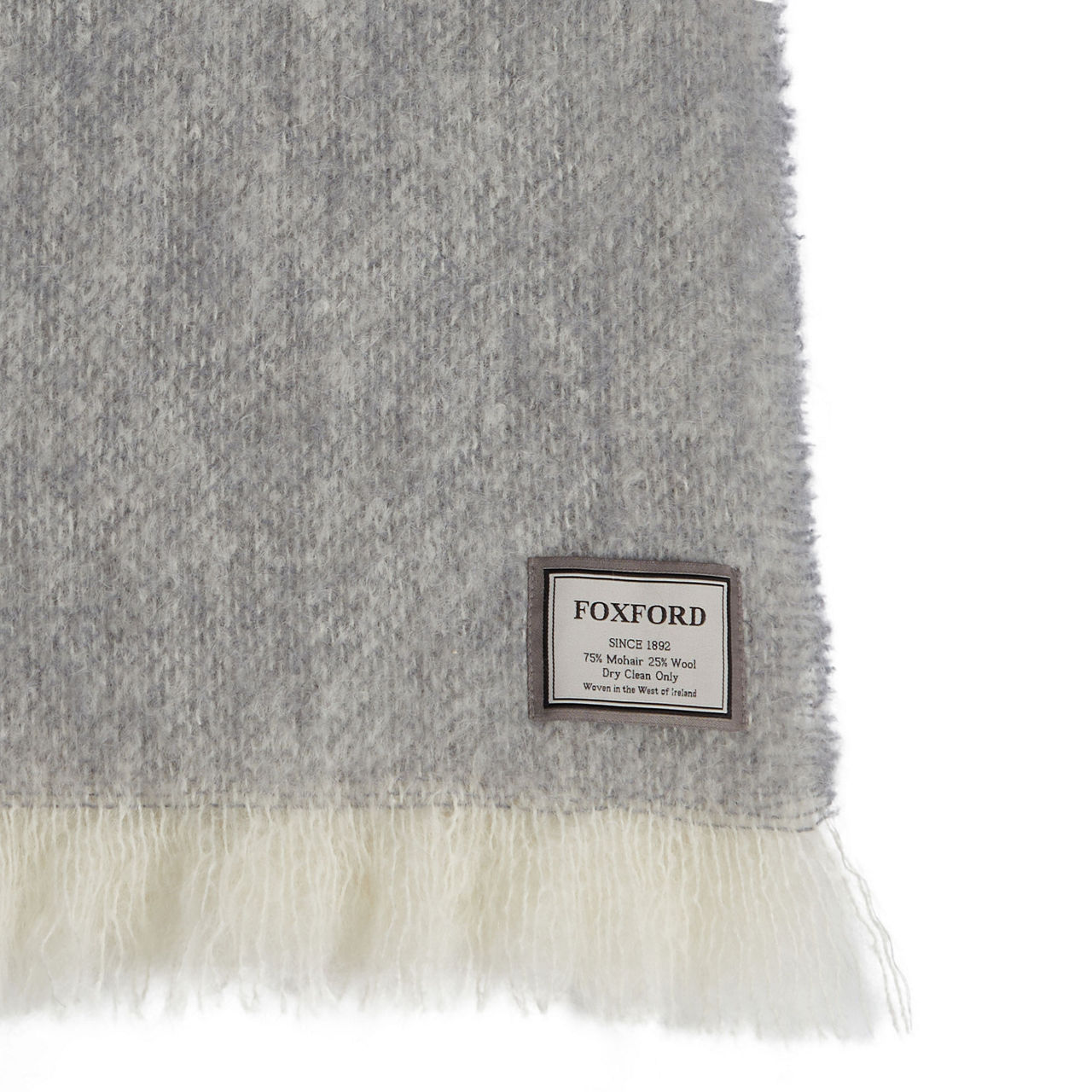 Each FOXFORD throw is expertly woven in the brand's historic County Mayo mill using mohair, reflecting traditional craftsmanship and contemporary elegance in a subtle grey colourway.
