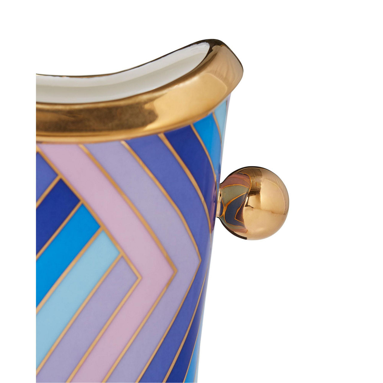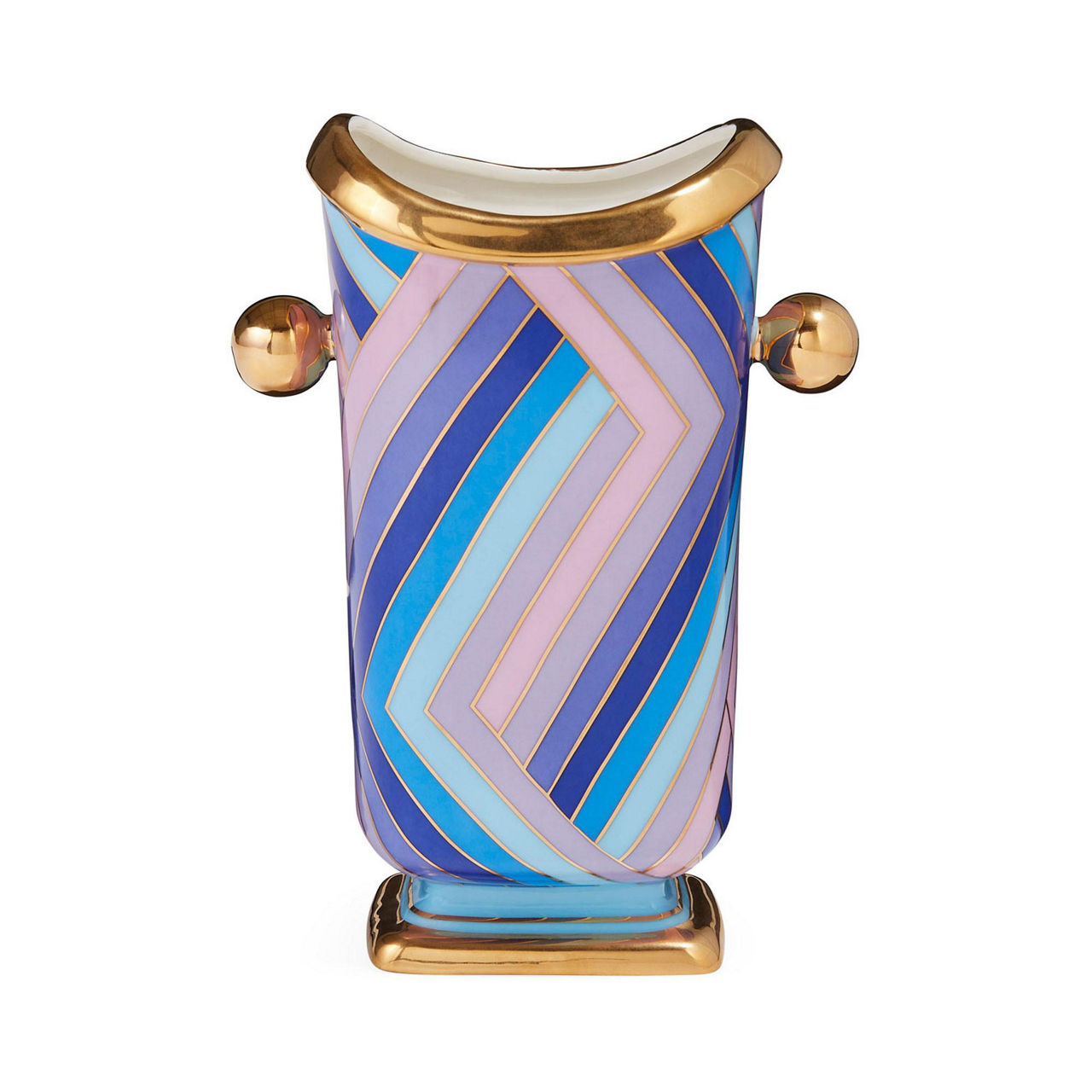 Heavenly Hues. Featuring 60s inspired concentric squares and geometric stripes, our Scala vessels are wrapped in cool blues and shades of lavender accented with shiny gold. Featuring classic shapes and easy-to-match colours, each porcelain piece stands chic in your mantel or tablescape. Style the entire collection together to create a major moment.