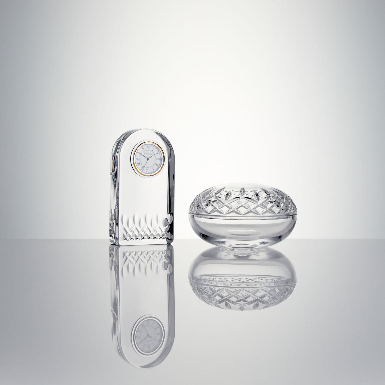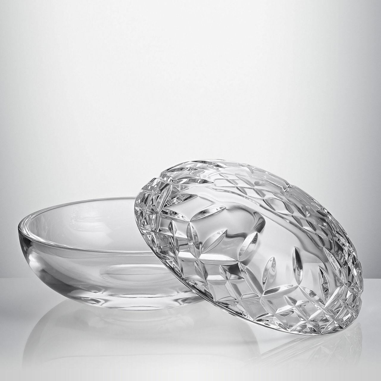 A modern evolution of the iconic Lismore pattern, the Lismore Essence Covered Box by Waterford features superior craftsmanship, inspired by the Gothic architecture of Lismore Castle with a slender, contemporary silhouette. This charming piece is an incredible gift or addition to your home to enclose precious objects inside the beauty of crystal.