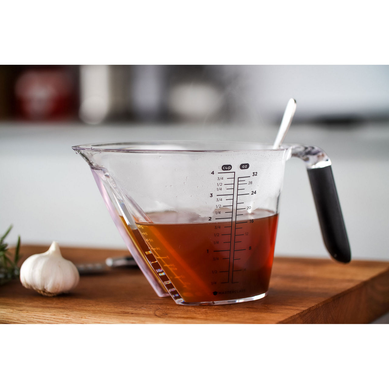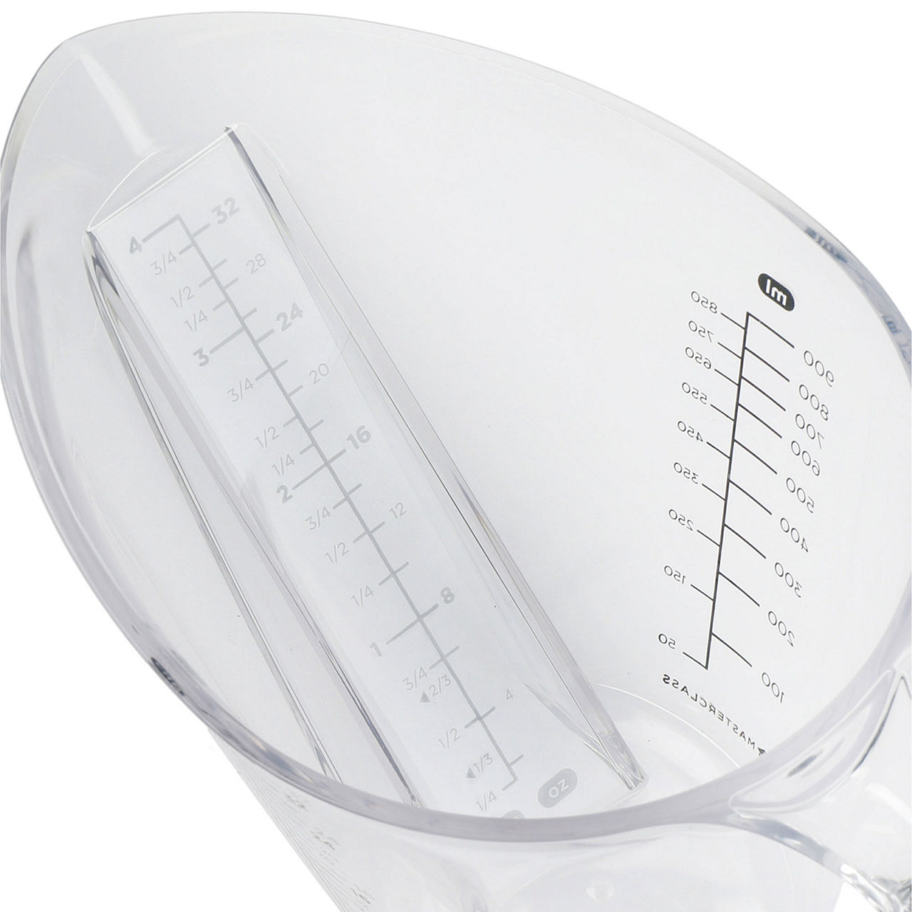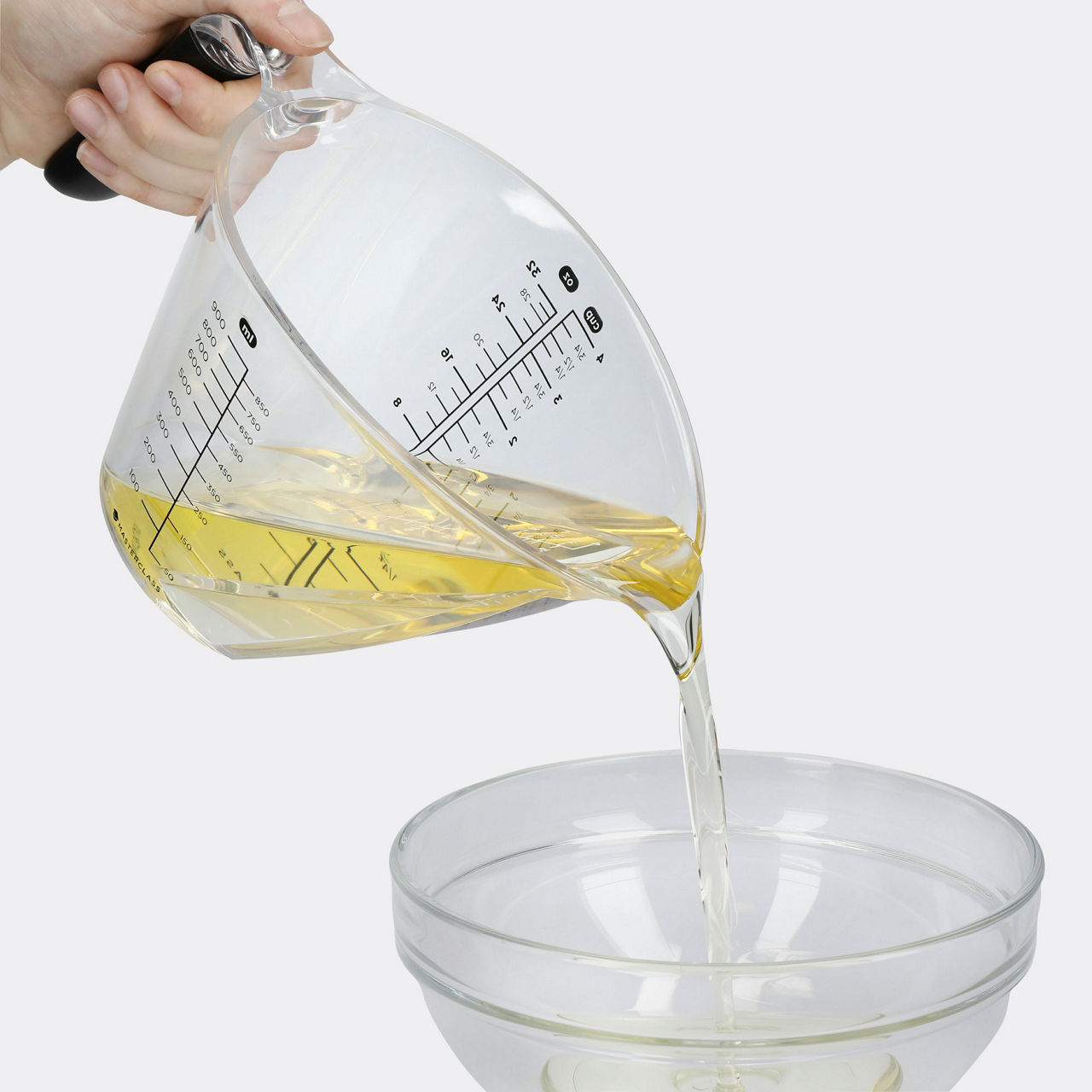 - Angled style, easy-to-read black typeface ml, fl oz and cup markings, non-slip, highly break-resistant, comfortable handle and anti-drip pouring spout