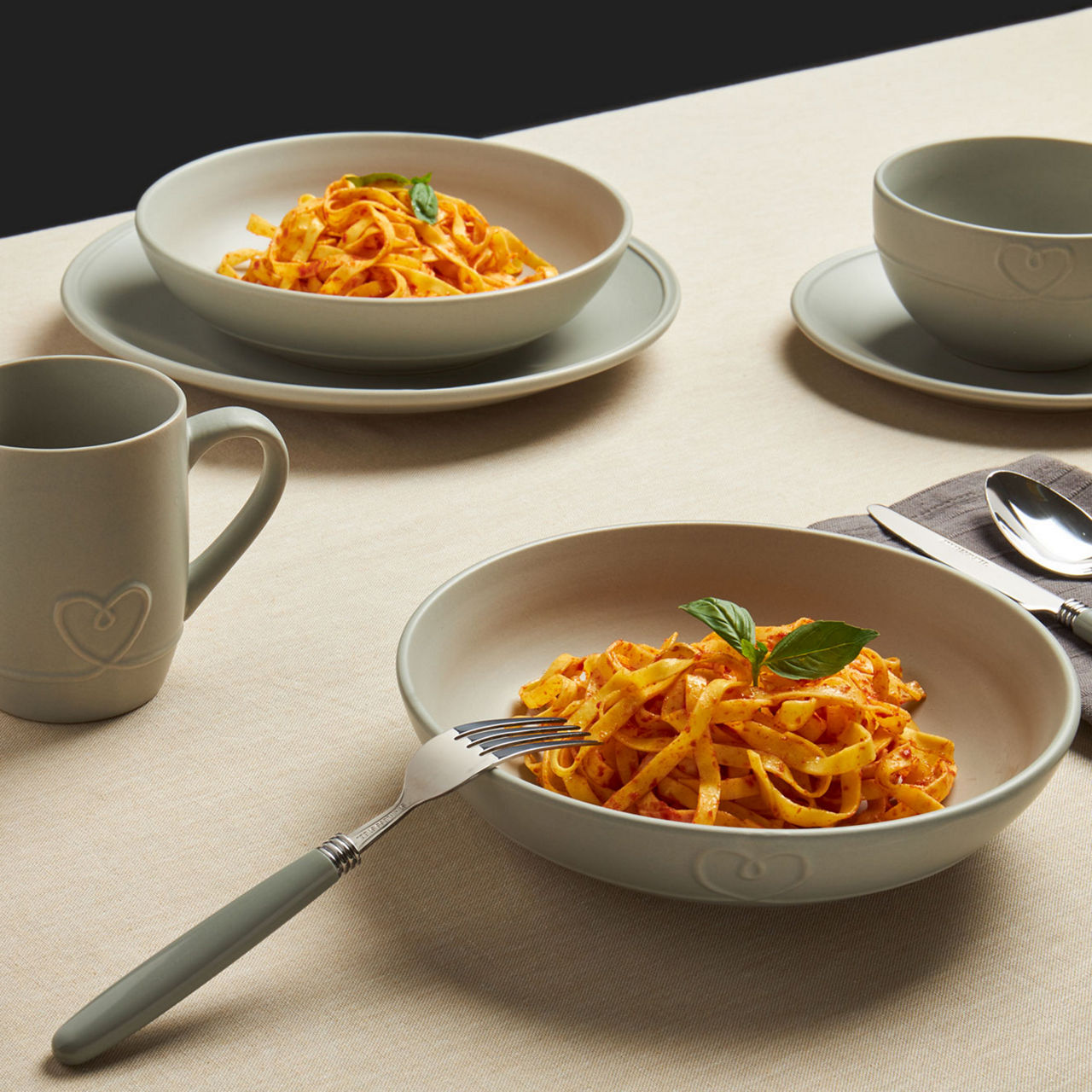 SABICHI 4 Piece Grey Embossed Heart Pasta Bowls
