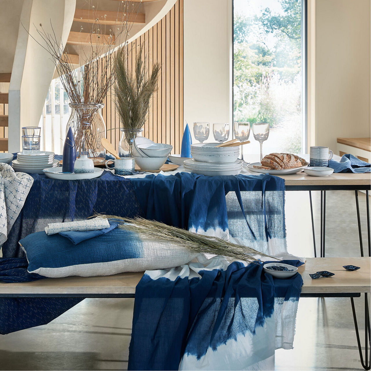 Inspired by the colours and textures found in the natural world Kiln Blue is a combination of uniquely Denby glazing techniques used to echo the movement and multi-faceted tones of waves. A collection designed to sit comfortably together in an on trend inky blue colourway or alone as capsule items designed for the way you live. All handcrafted in Derbyshire the collection uses artisan, studio potter inspired effects such as dappled sprayed and an over dipped glazing, and compromises of multi-functional pieces that are beautiful for eating, serving, and displaying in any room in the home.