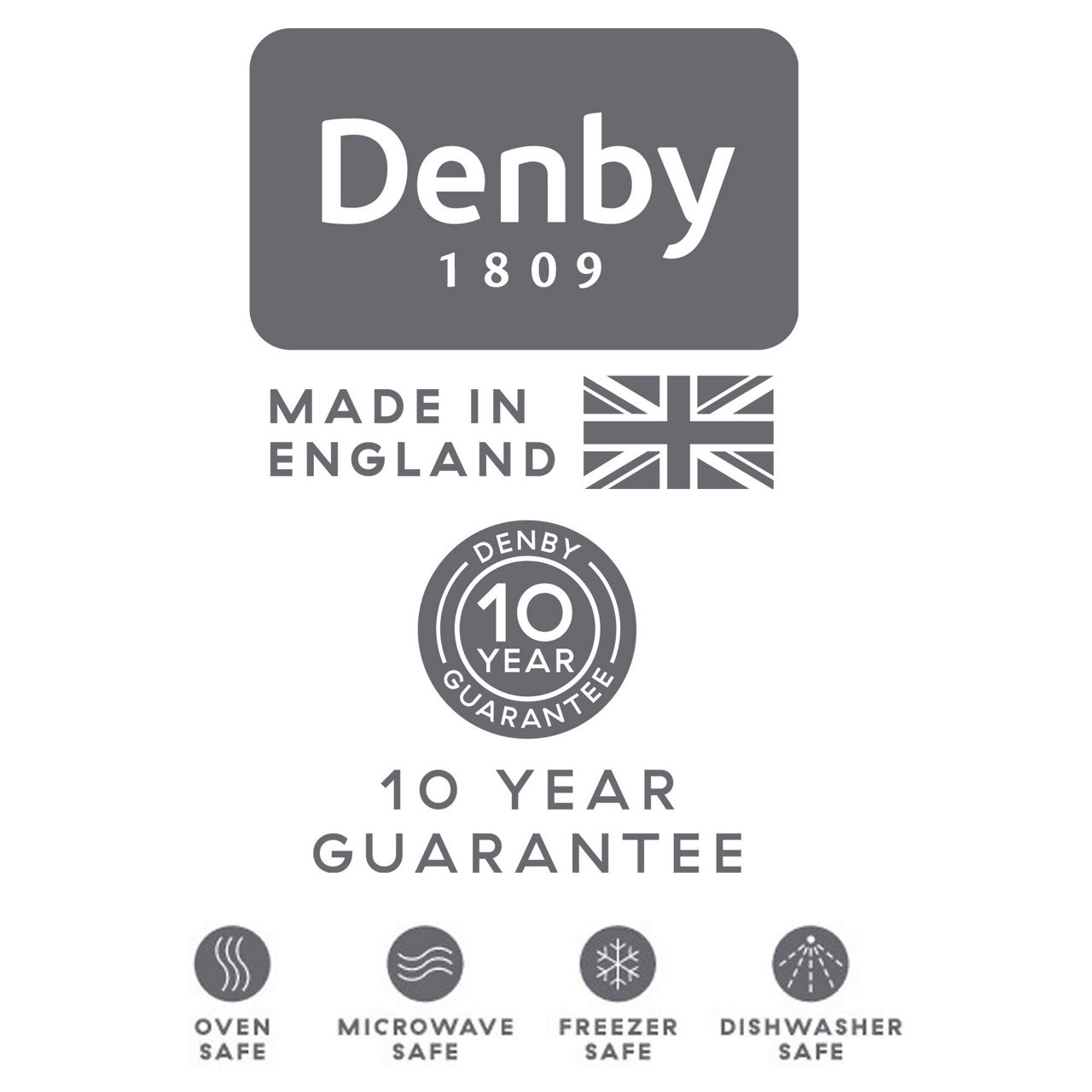 - Comes with the Denby 10 Year Guarantee. Hand-Crafted in the Denby Pottery from high quality, locally-sourced clay. Expertly glazed to enhance durability. Passes through 20 Pairs of hands during the making process.