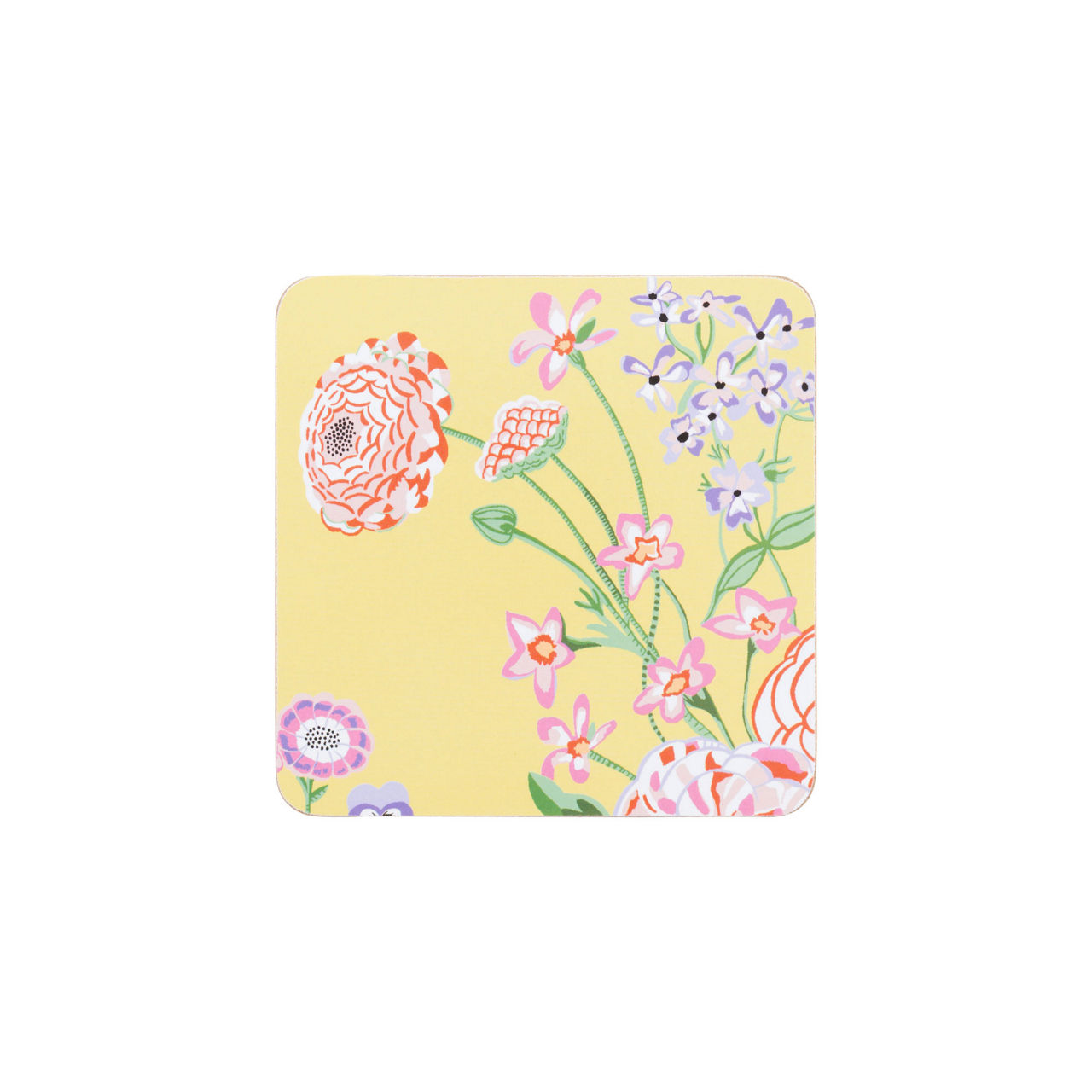 Step into a garden of delight with Cath Kidston's 'Floral Fields' range. Crafted for daily elegance, these coasters offer easy wipe-clean convenience, a must for everyones table. Against an uplifting yellow backdrop, vibrant flowers bloom in exquisite detail, creating a picturesque symphony of colours. This pattern is a celebration of nature's beauty, bringing a breath of fresh air to your kitchen. Elevate your space with the charm of a blooming meadow, and let every moment be a feast for the eyes.