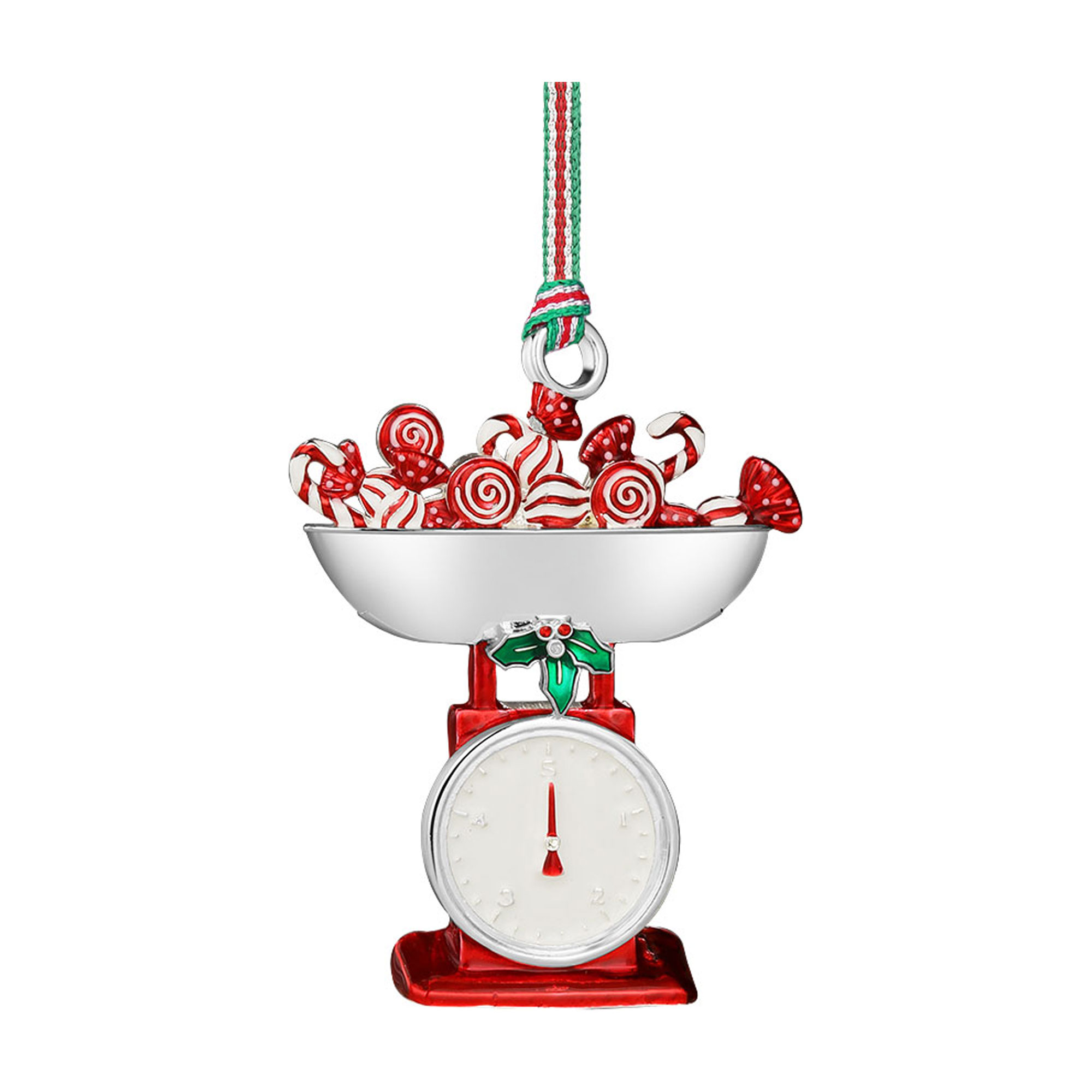 - Silver-plated, protective anti-tarnish layer, 'Retro Weighing Scales' design, enamel detailing, festive hanging ribbon, presented in Newbridge Silverware Christmas Collection packaging